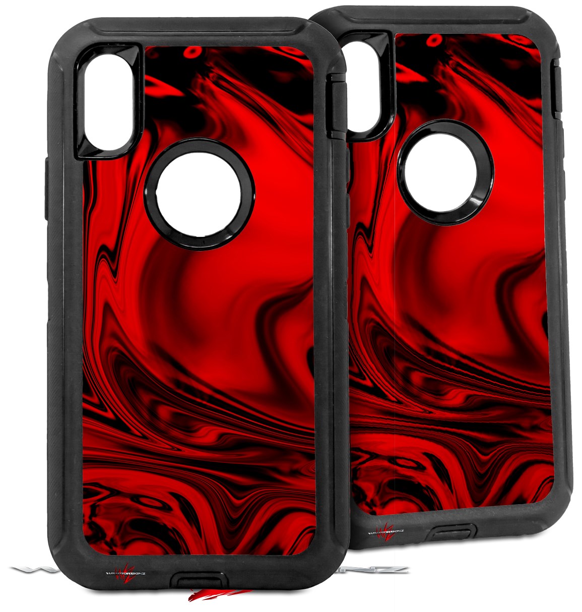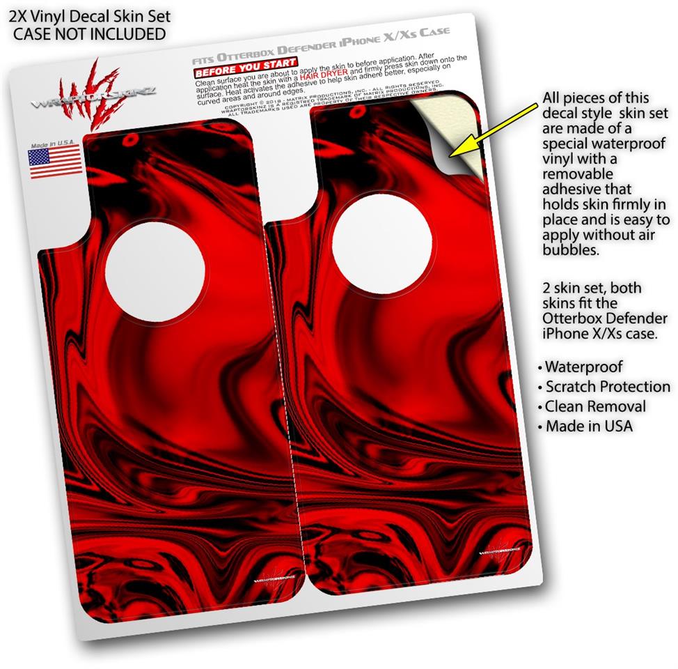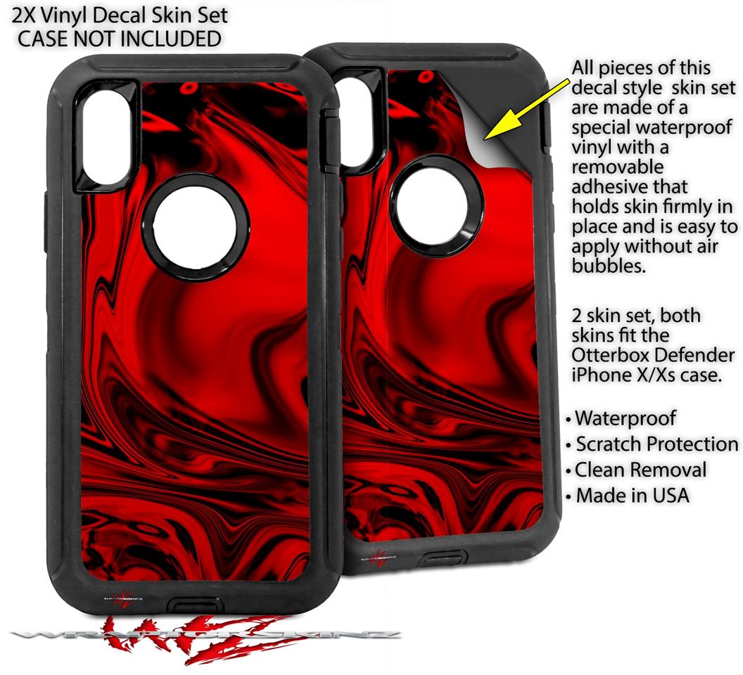 2x Decal style Skin Wrap Set compatible with Otterbox Defender iPhone X and Xs Case - Liquid Metal Chrome Red (CASE NOT INCLUDED)
