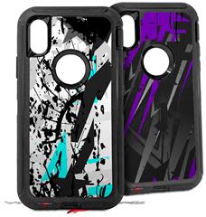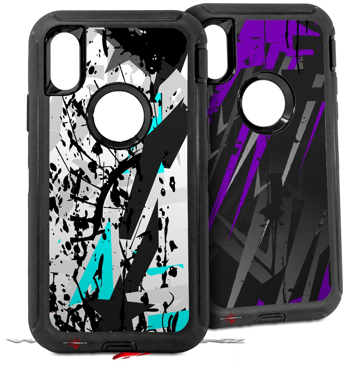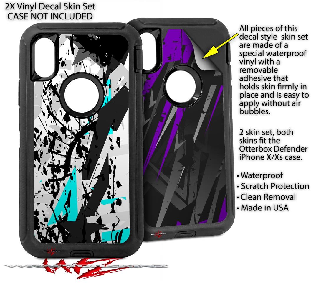 2x Decal style Skin Wrap Set compatible with Otterbox Defender iPhone X and Xs Case - Baja 0018 Neon Teal (CASE NOT INCLUDED)