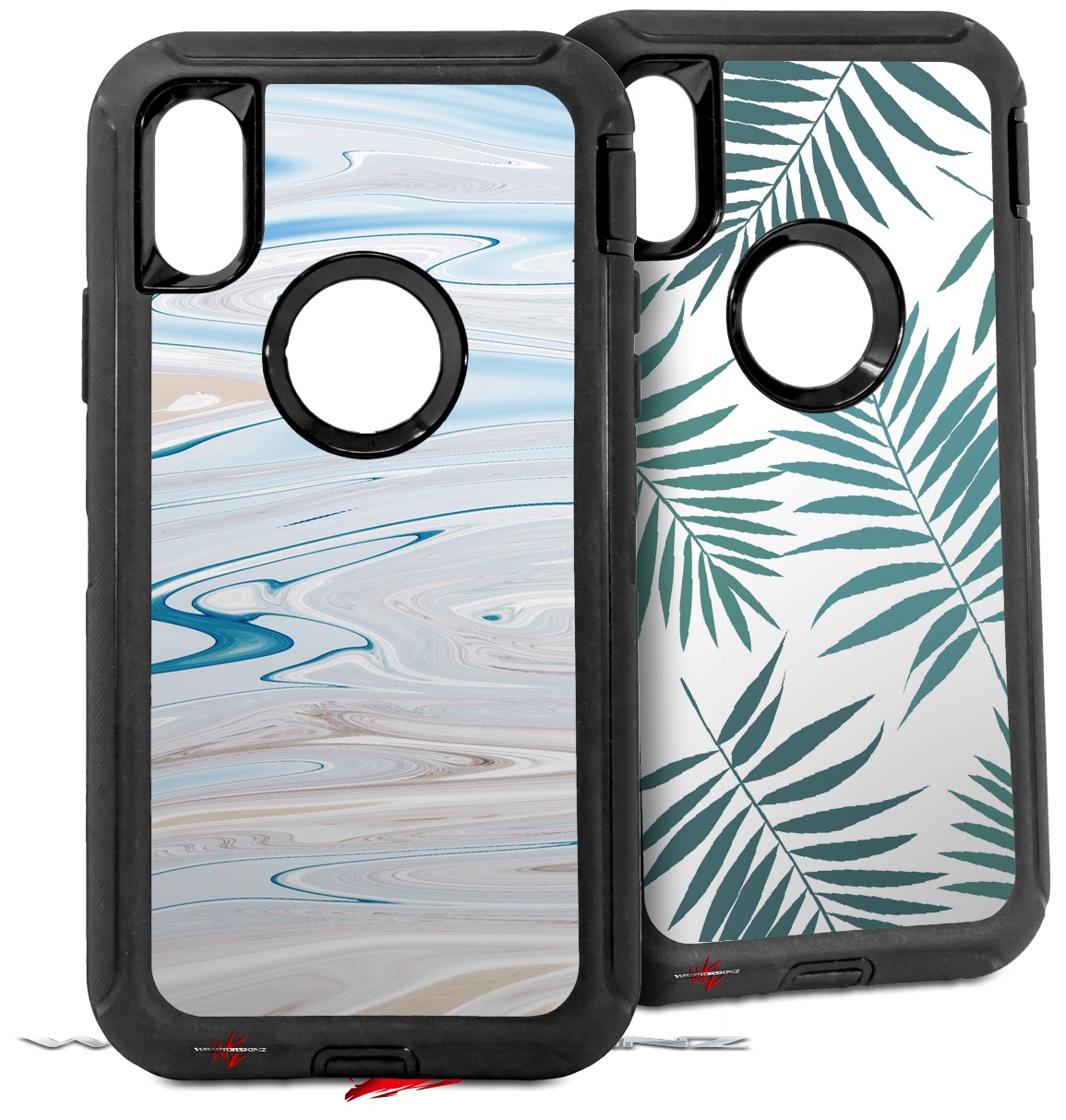 2x Decal style Skin Wrap Set compatible with Otterbox Defender iPhone X and Xs Case - Marble Beach (CASE NOT INCLUDED)