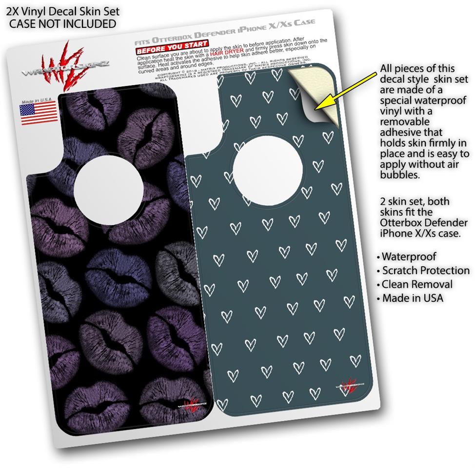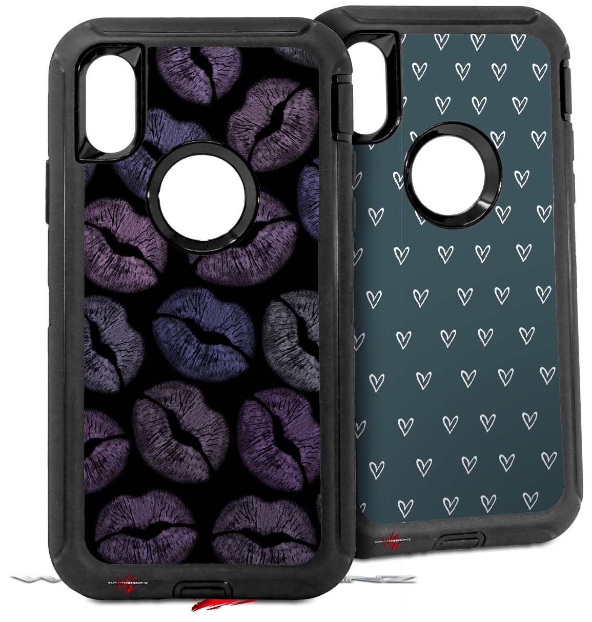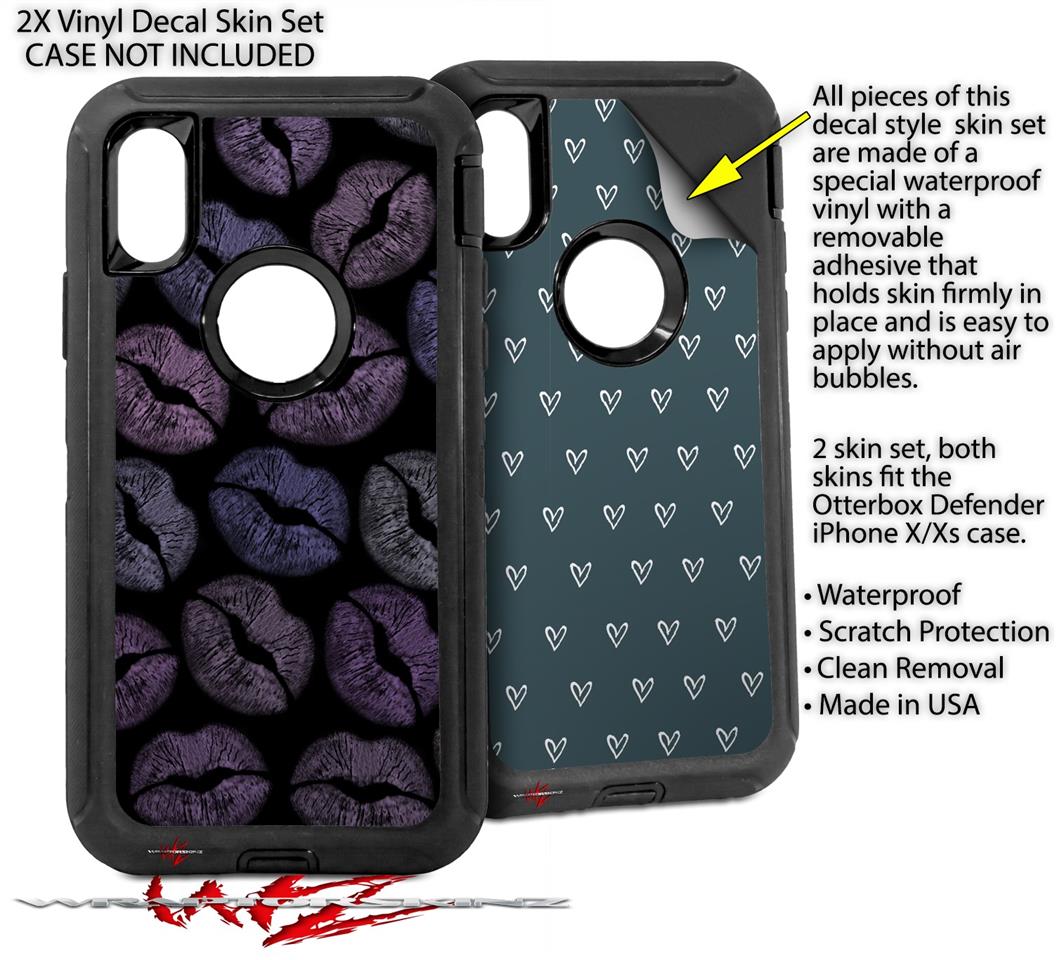 2x Decal style Skin Wrap Set compatible with Otterbox Defender iPhone X and Xs Case - Purple And Black Lips (CASE NOT INCLUDED)