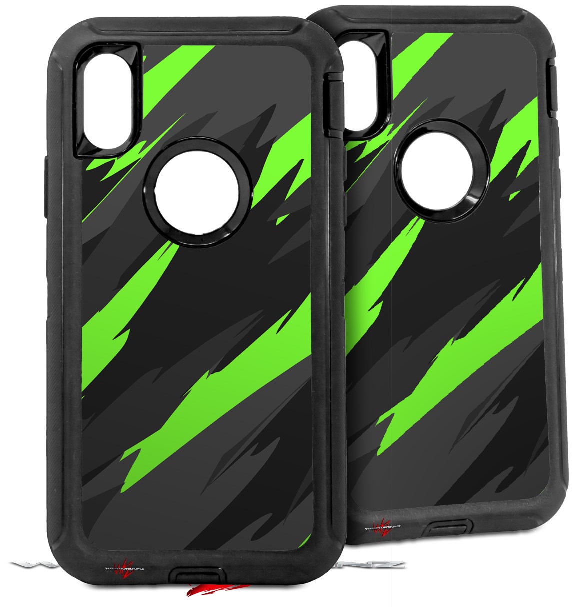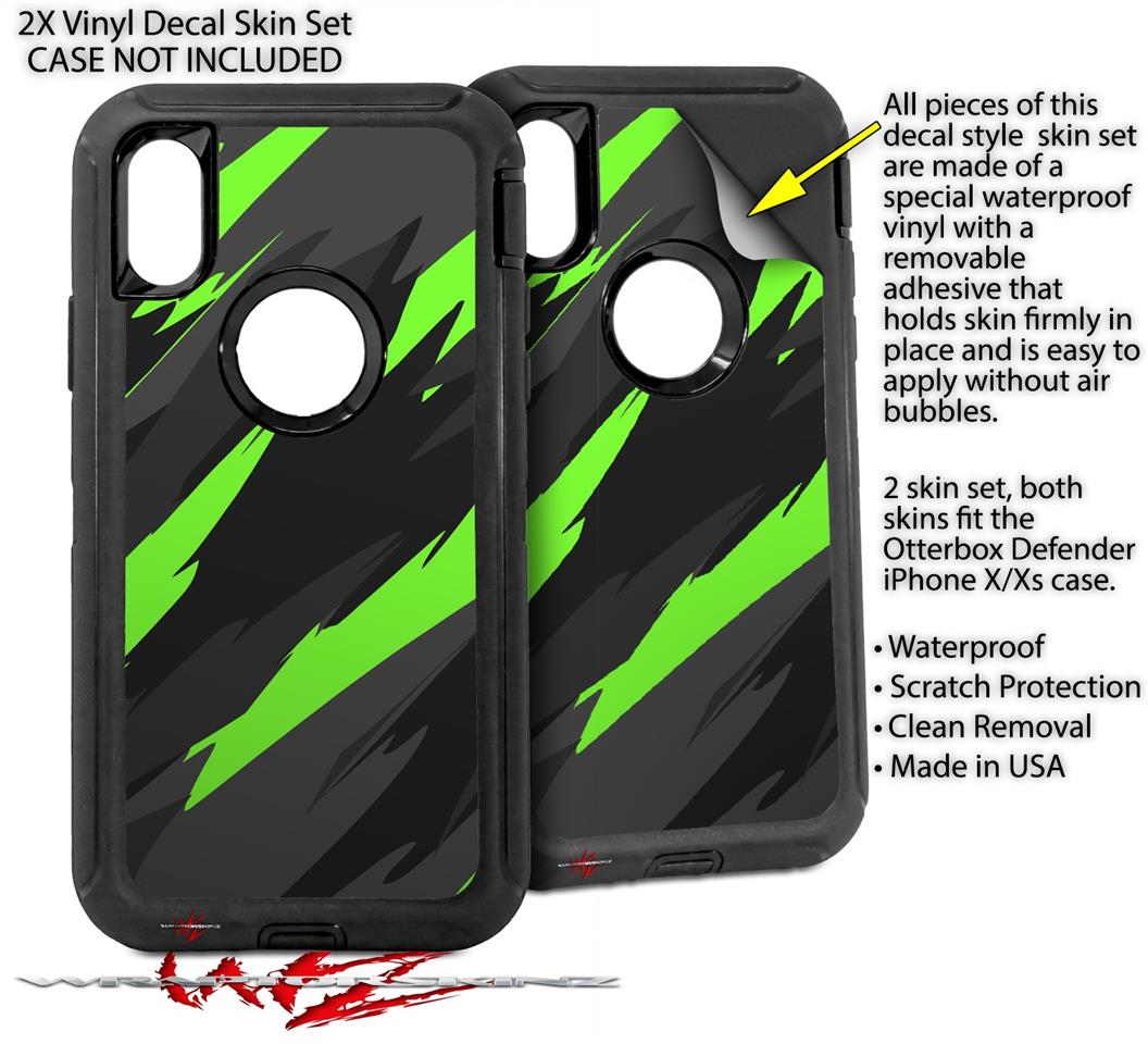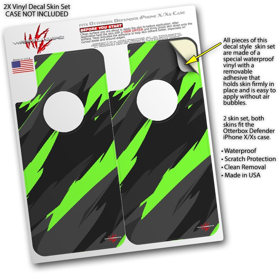 2x Decal style Skin Wrap Set compatible with Otterbox Defender iPhone X and Xs Case - Jagged Camo Neon Green (CASE NOT INCLUDED)