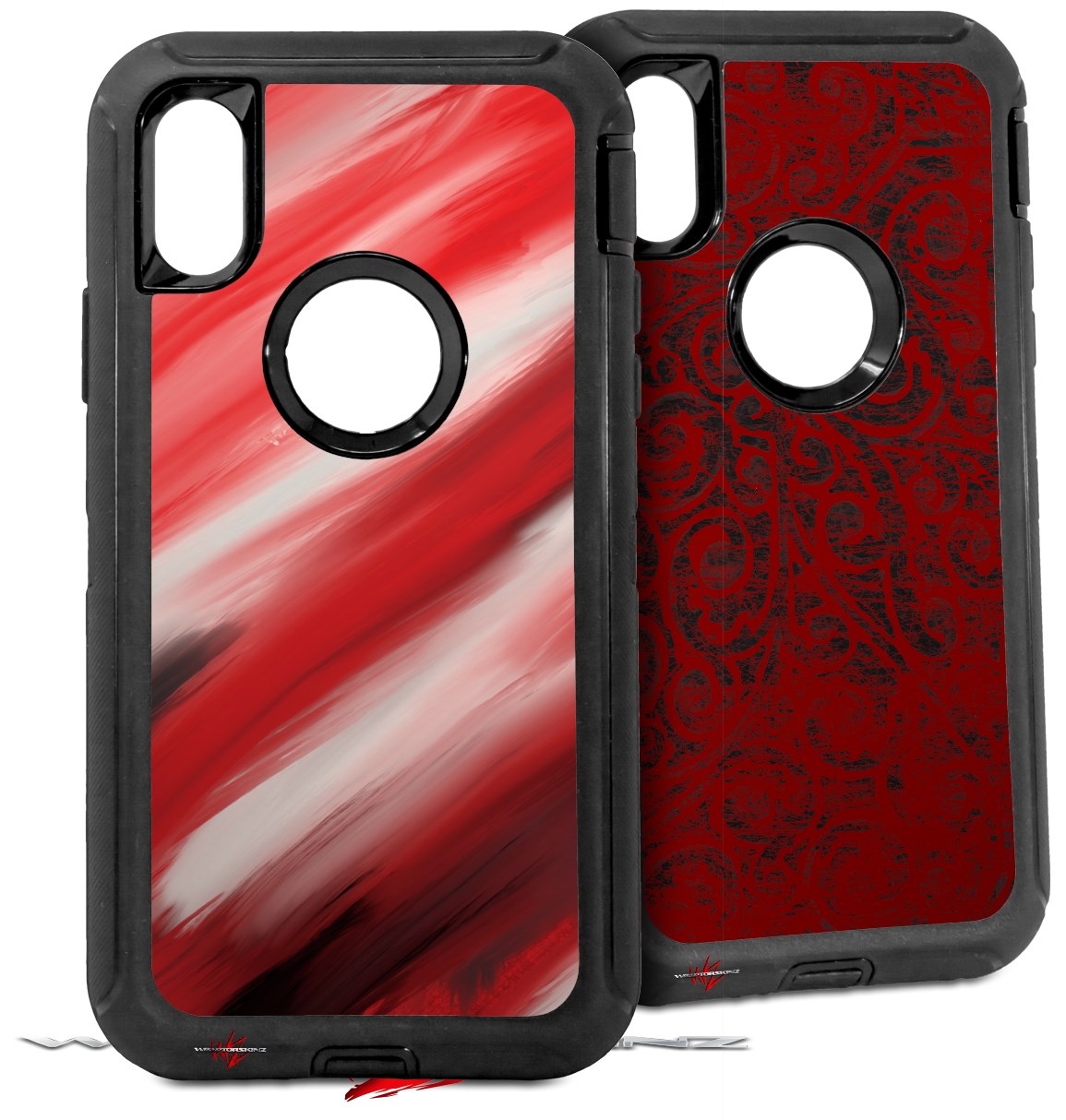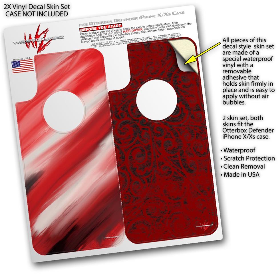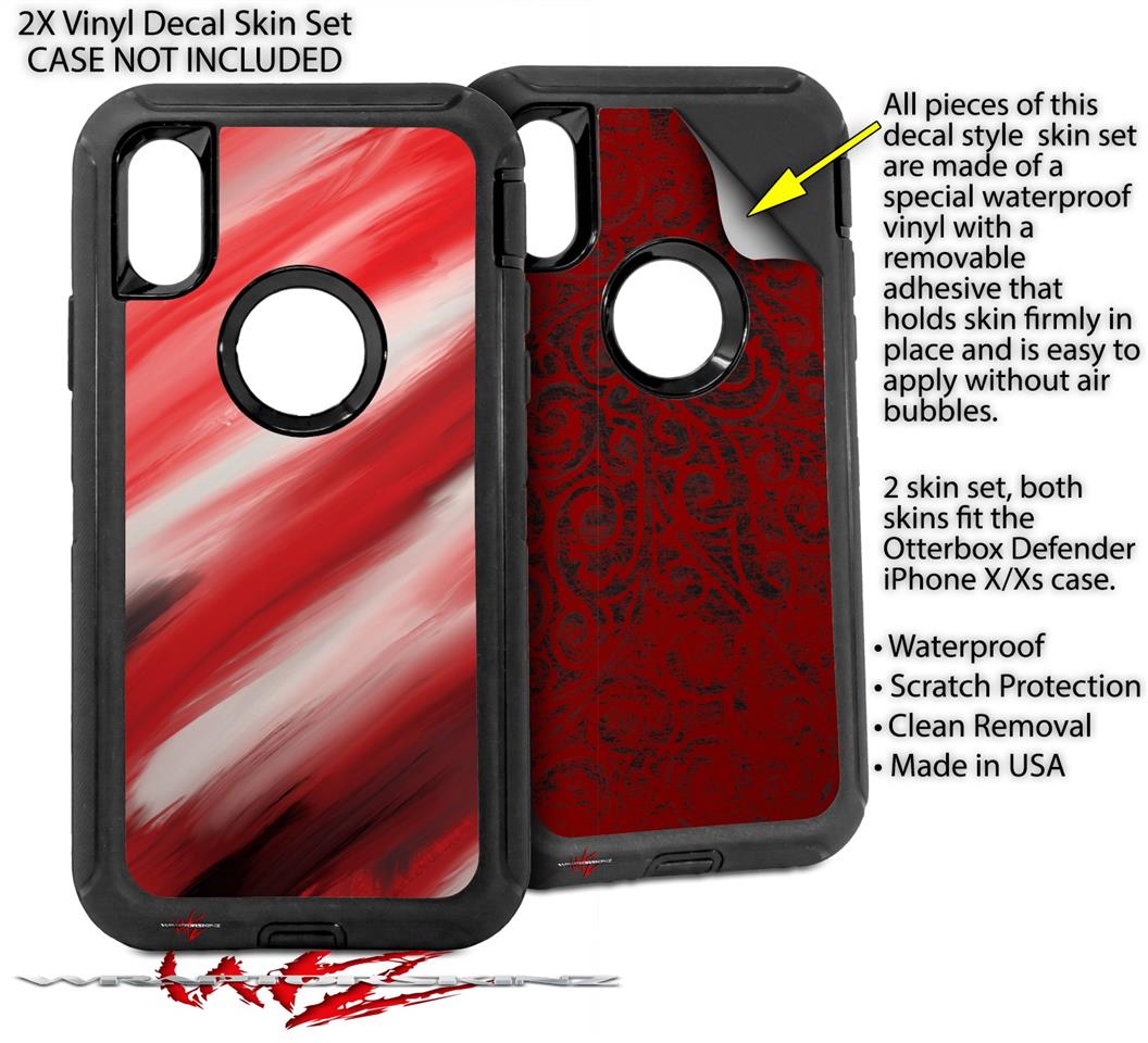 2x Decal style Skin Wrap Set compatible with Otterbox Defender iPhone X and Xs Case - Paint Blend Red (CASE NOT INCLUDED)