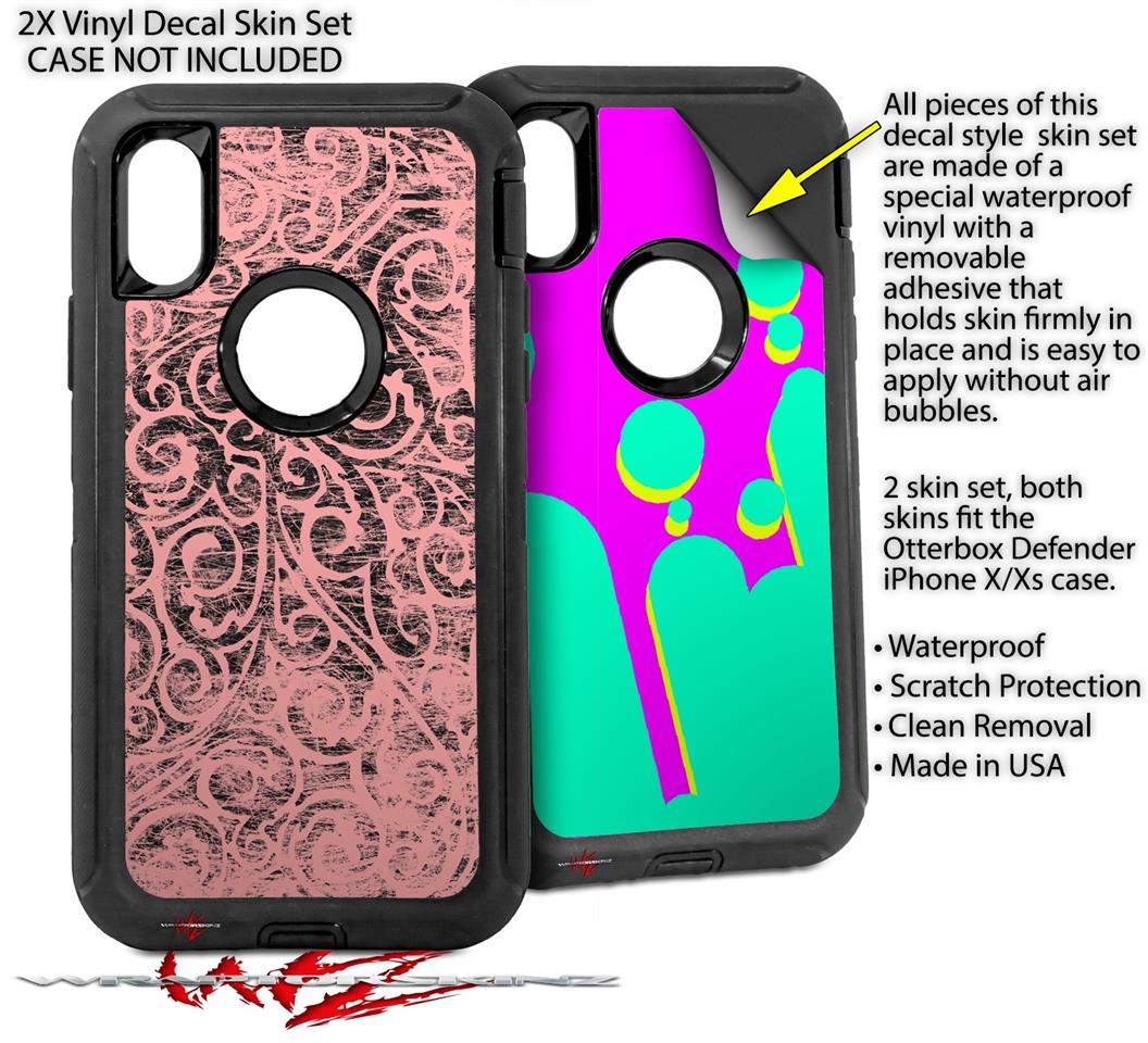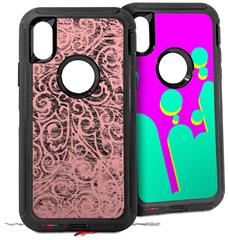 2x Decal style Skin Wrap Set compatible with Otterbox Defender iPhone X and Xs Case - Folder Doodles Pink (CASE NOT INCLUDED)