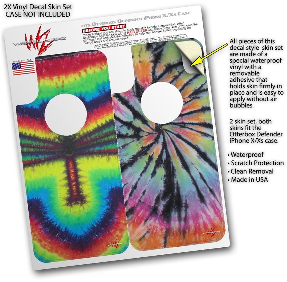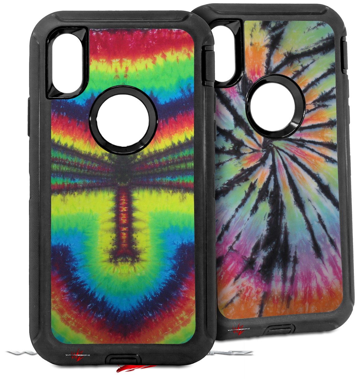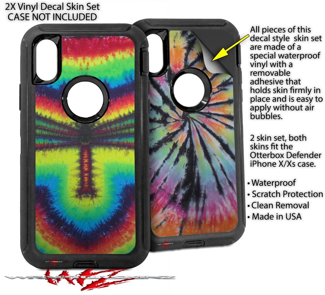 2x Decal style Skin Wrap Set compatible with Otterbox Defender iPhone X and Xs Case - Tie Dye Dragonfly (CASE NOT INCLUDED)