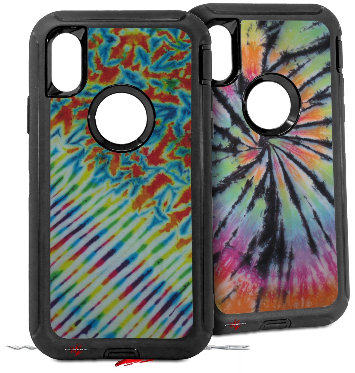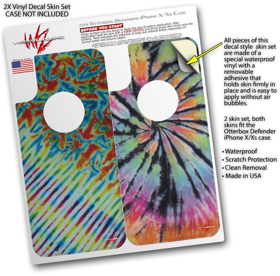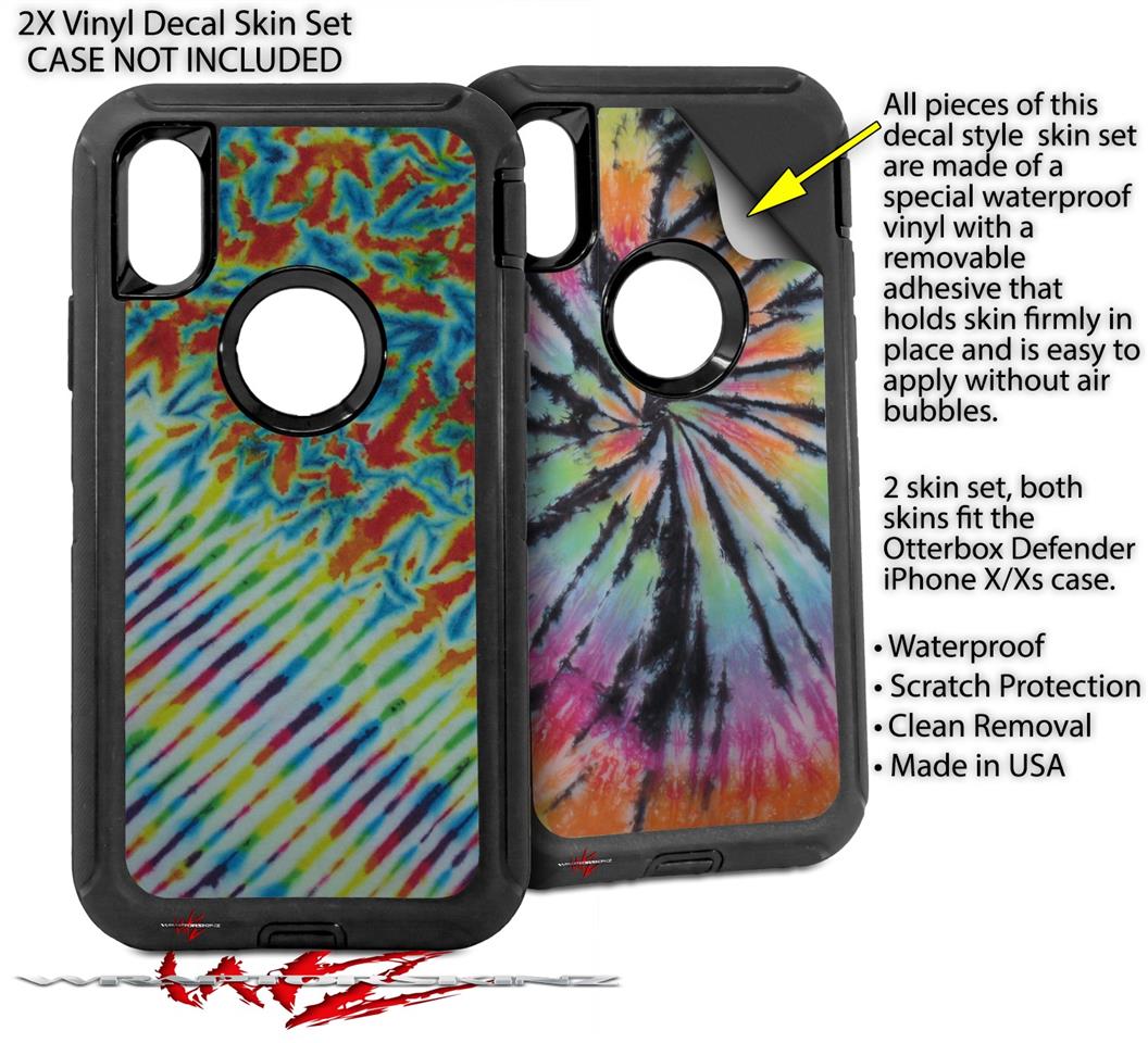 2x Decal style Skin Wrap Set compatible with Otterbox Defender iPhone X and Xs Case - Tie Dye Mixed Rainbow (CASE NOT INCLUDED)