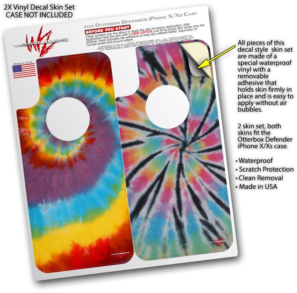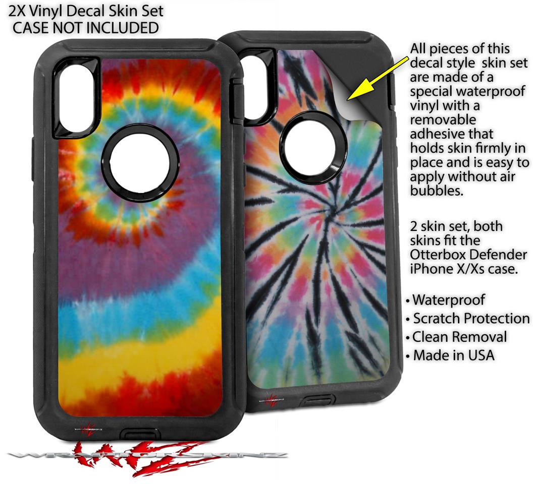 2x Decal style Skin Wrap Set compatible with Otterbox Defender iPhone X and Xs Case - Tie Dye Swirl 108 (CASE NOT INCLUDED)