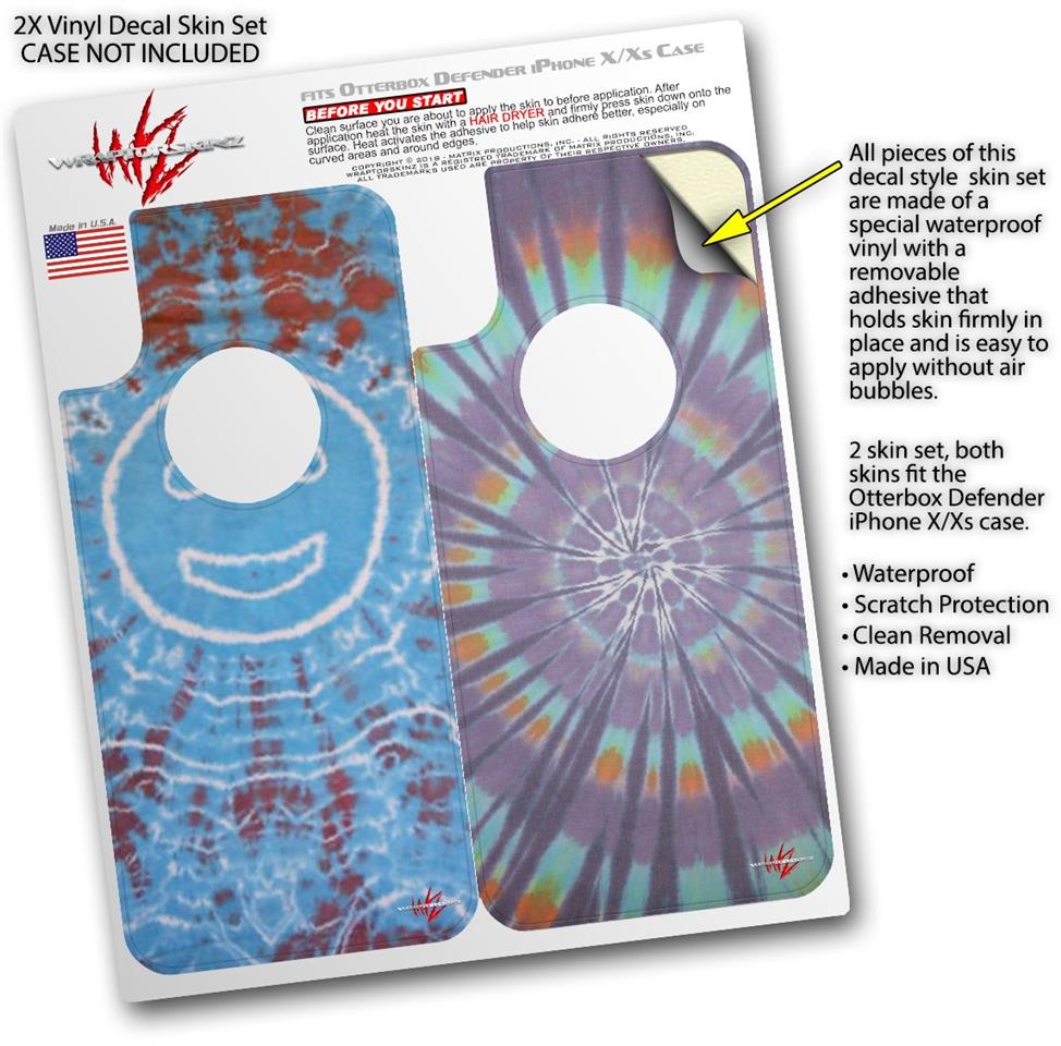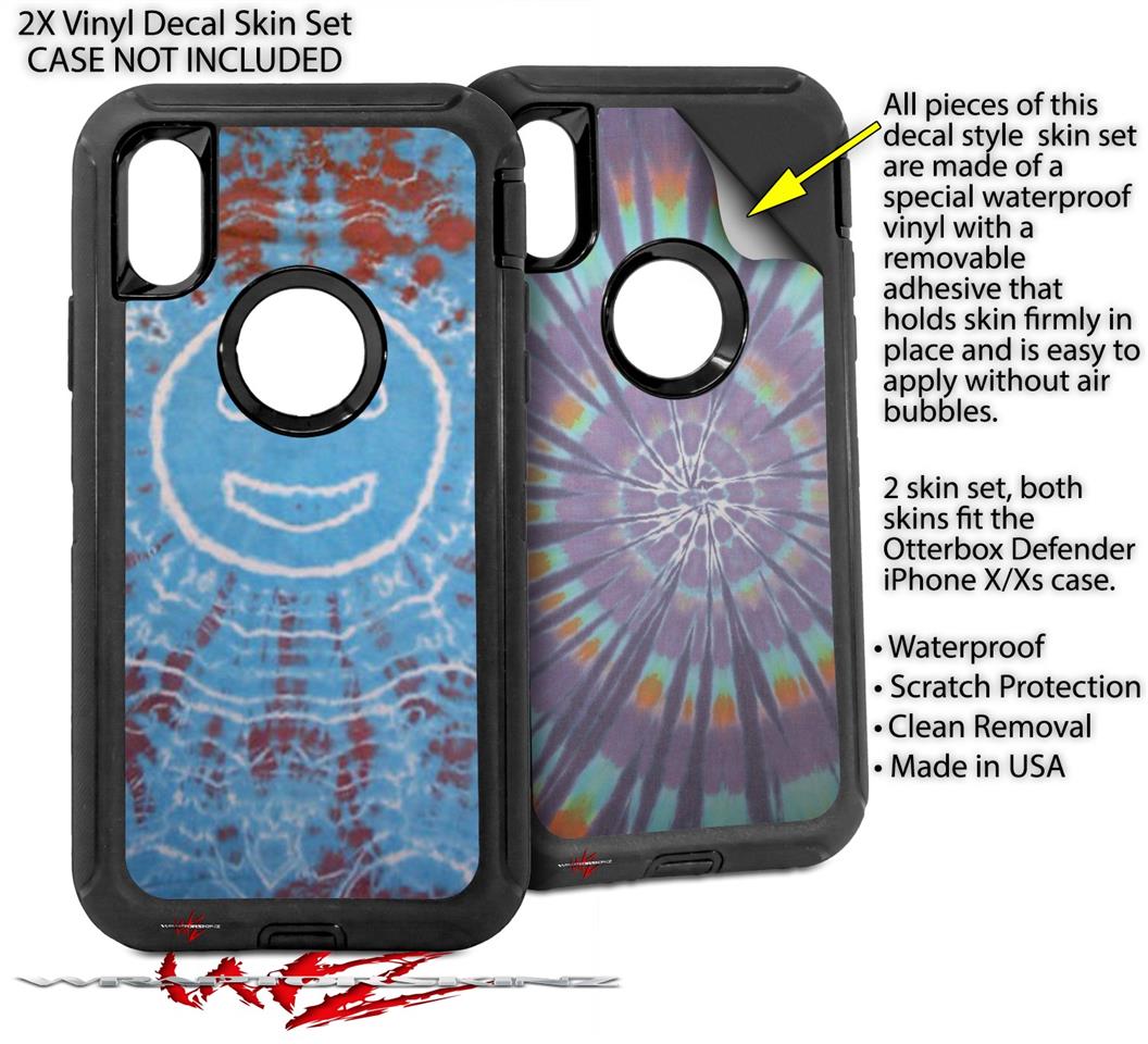 2x Decal style Skin Wrap Set compatible with Otterbox Defender iPhone X and Xs Case - Tie Dye Happy 101 (CASE NOT INCLUDED)