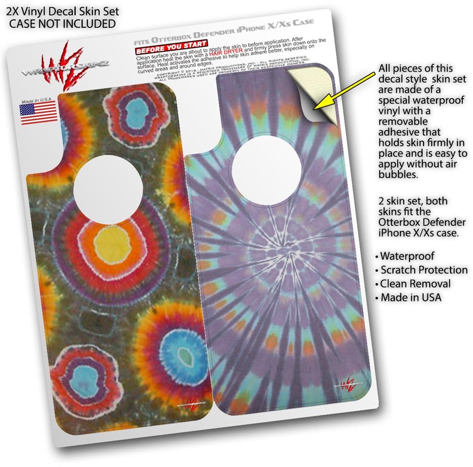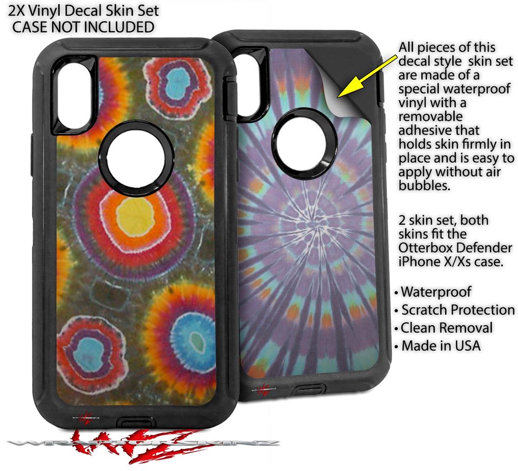 2x Decal style Skin Wrap Set compatible with Otterbox Defender iPhone X and Xs Case - Tie Dye Circles 100 (CASE NOT INCLUDED)