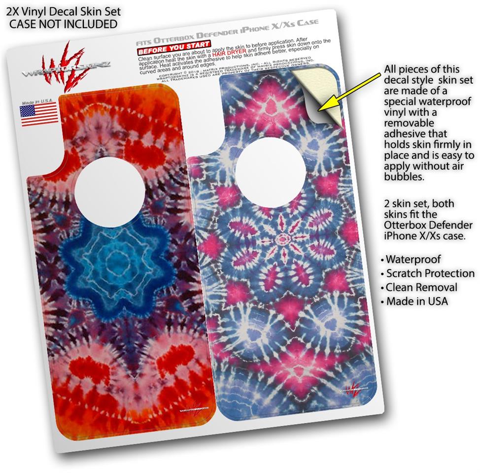2x Decal style Skin Wrap Set compatible with Otterbox Defender iPhone X and Xs Case - Tie Dye Star 100 (CASE NOT INCLUDED)