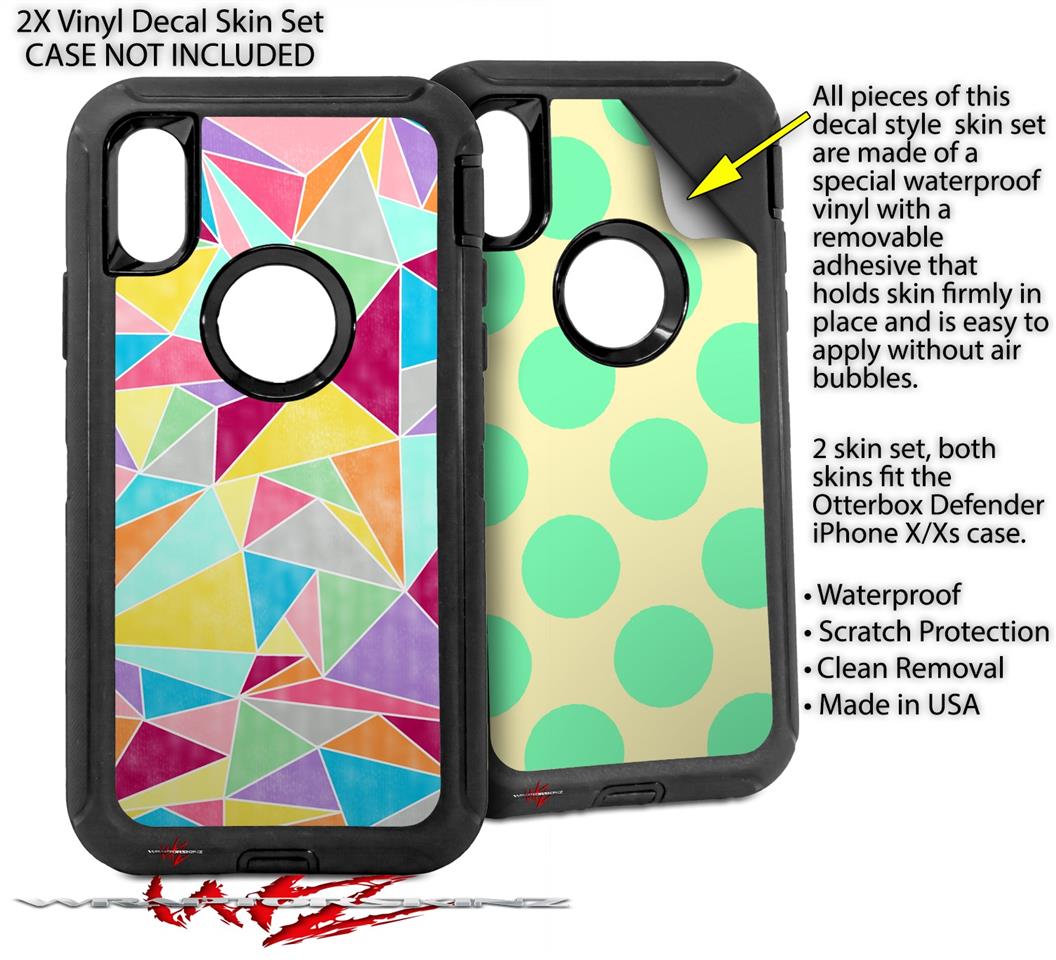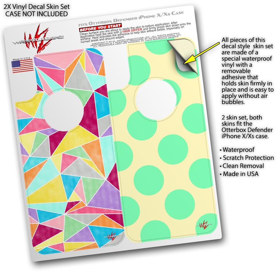 WraptorSkinz® skin wraps compatible with Otterbox Defender iPhone X / Xs Cases are printed using superb photo quality designs and vibrant colors printed with special fade resistant inks that last even in direct sun for years. WraptorSkinz are a composite of two layers of commercial grade materials. The bottom layer is a soft, flexible vinyl with a special removable adhesive that is easily positioned, applied without air bubbles. Next, we print the bottom layer with UV protected, fade resistant inks that deliver superb photo quality designs in vibrant colors. Finally, we bond a professional grade laminate over the entire skin adding a glossy protective finish. This product is not affiliated with or endorsed by Otterbox.