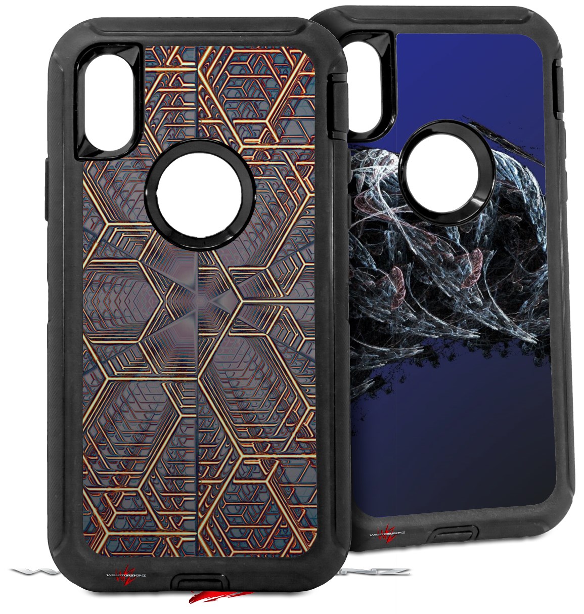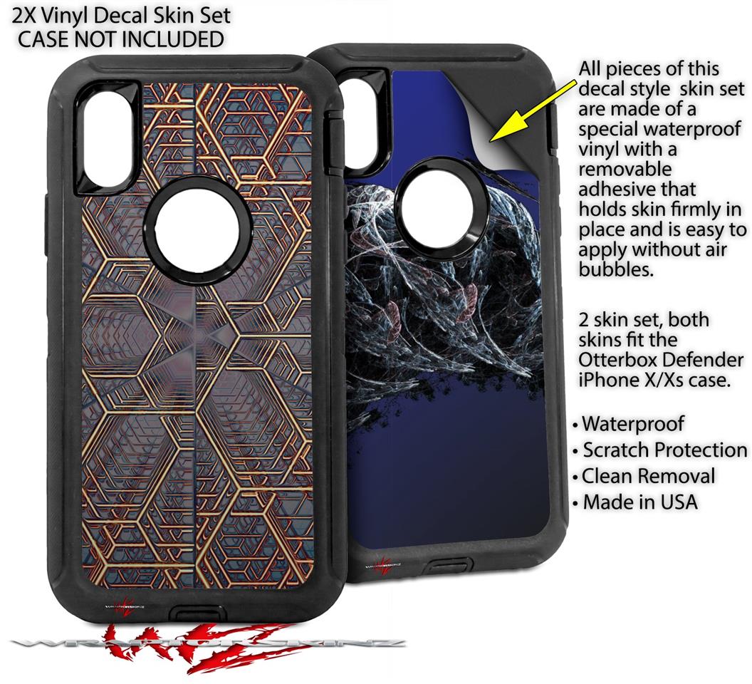 2x Decal style Skin Wrap Set compatible with Otterbox Defender iPhone X and Xs Case - Hexfold (CASE NOT INCLUDED)