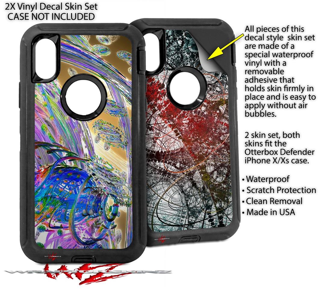 2x Decal style Skin Wrap Set compatible with Otterbox Defender iPhone X and Xs Case - Vortices (CASE NOT INCLUDED)