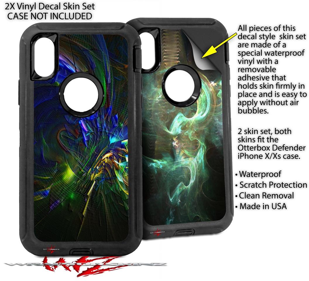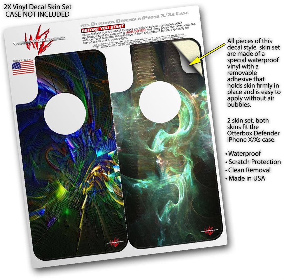 2x Decal style Skin Wrap Set compatible with Otterbox Defender iPhone X and Xs Case - Busy (CASE NOT INCLUDED)