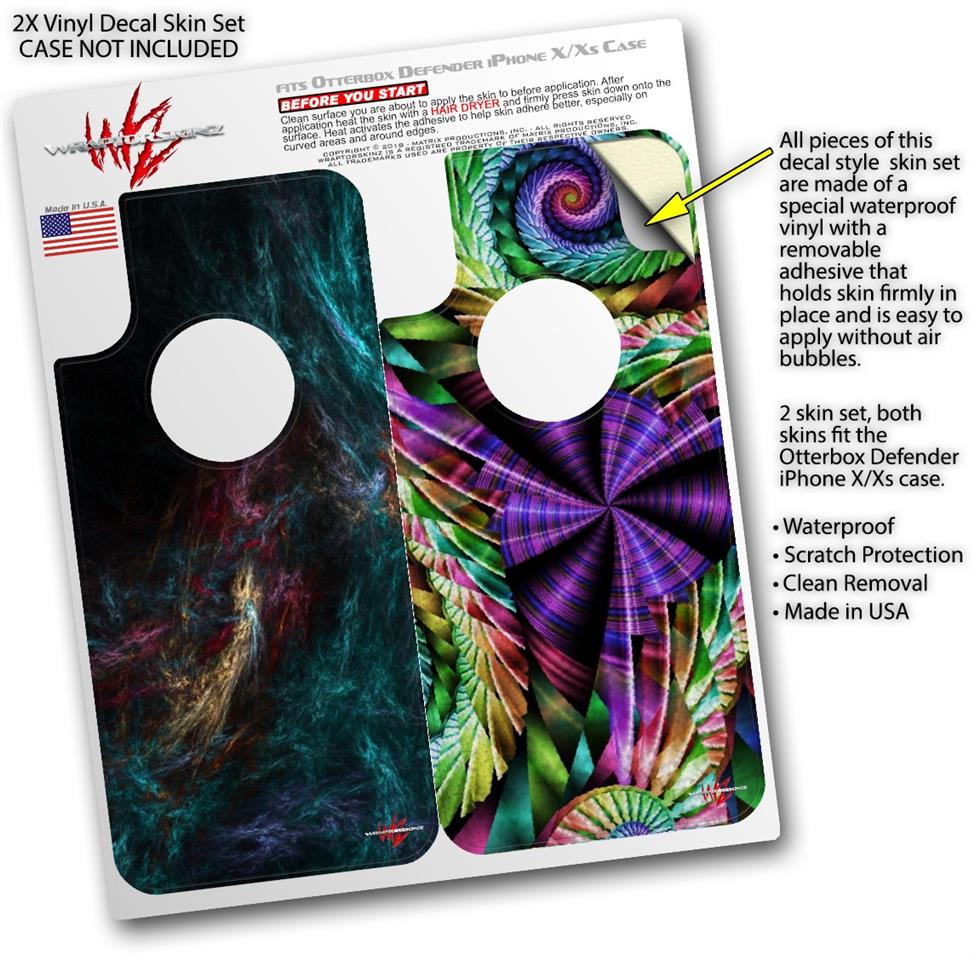 • CASE NOT INCLUDED - 2 Skins cover back surface of 2 Otterbox Defender iPhone X / Xs cases as pictured.