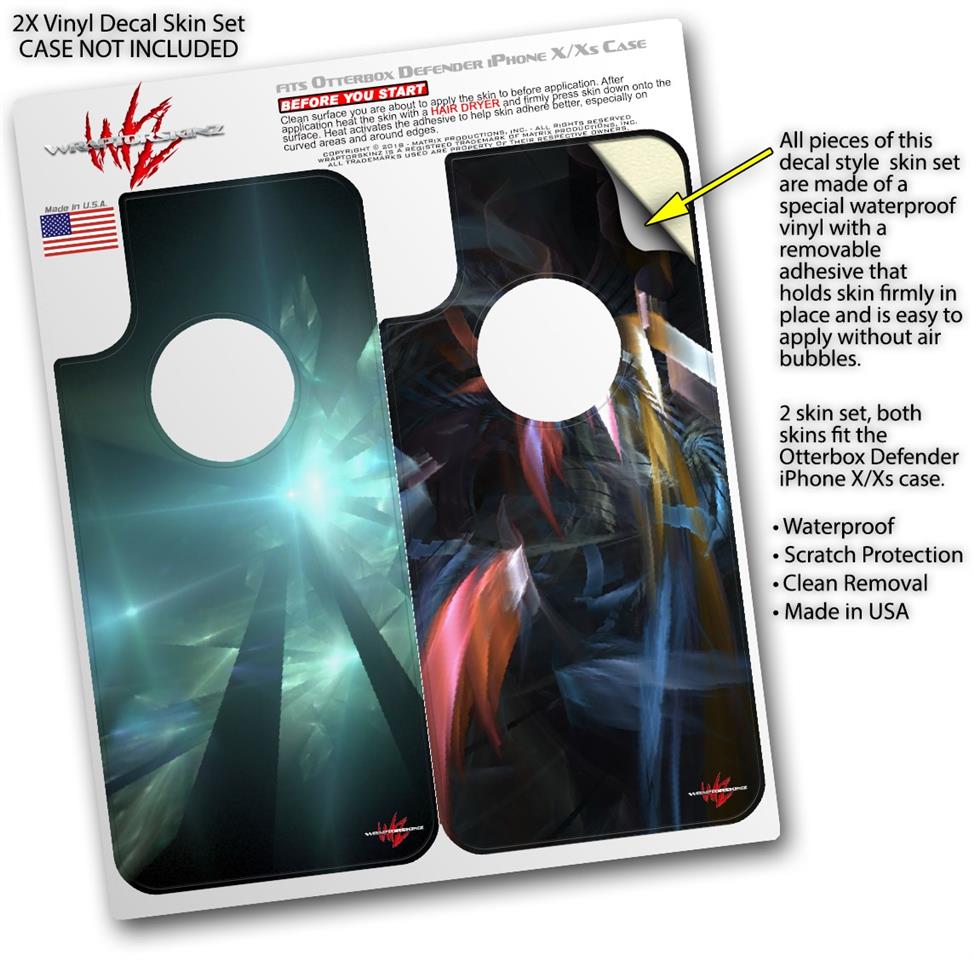 2x Decal style Skin Wrap Set compatible with Otterbox Defender iPhone X and Xs Case - Shards (CASE NOT INCLUDED)