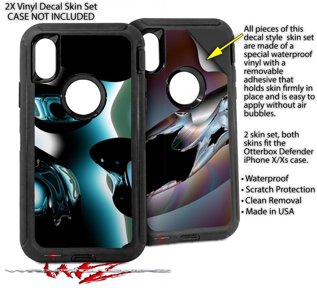 2x Decal style Skin Wrap Set compatible with Otterbox Defender iPhone X and Xs Case - Metal (CASE NOT INCLUDED)