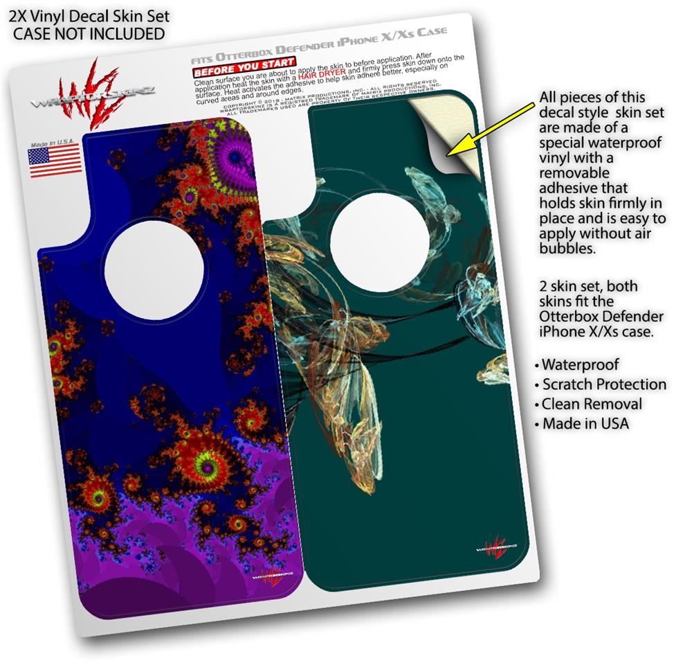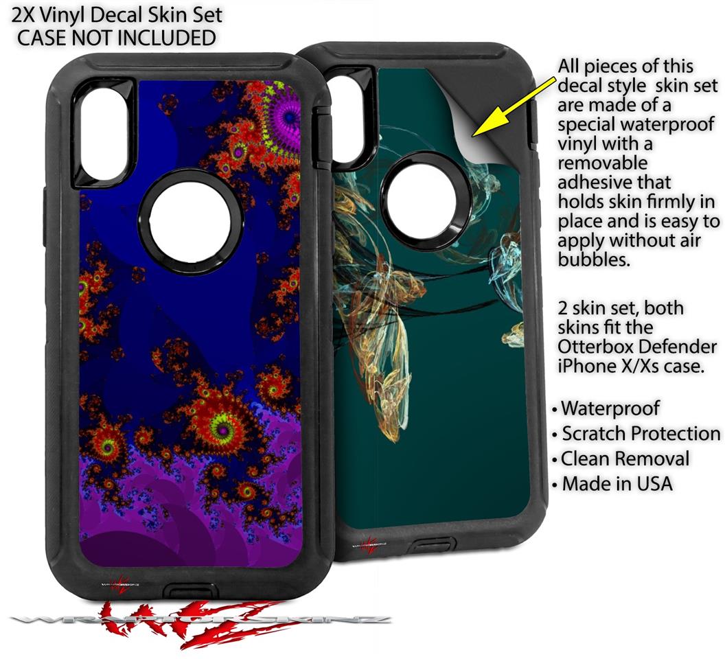 2x Decal style Skin Wrap Set compatible with Otterbox Defender iPhone X and Xs Case - Classic (CASE NOT INCLUDED)