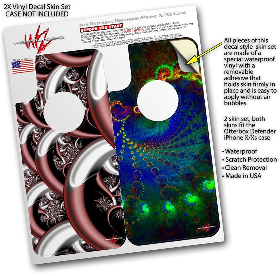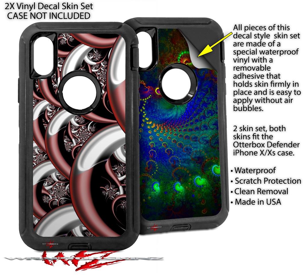 • CASE NOT INCLUDED - 2 Skins cover back surface of 2 Otterbox Defender iPhone X / Xs cases as pictured.