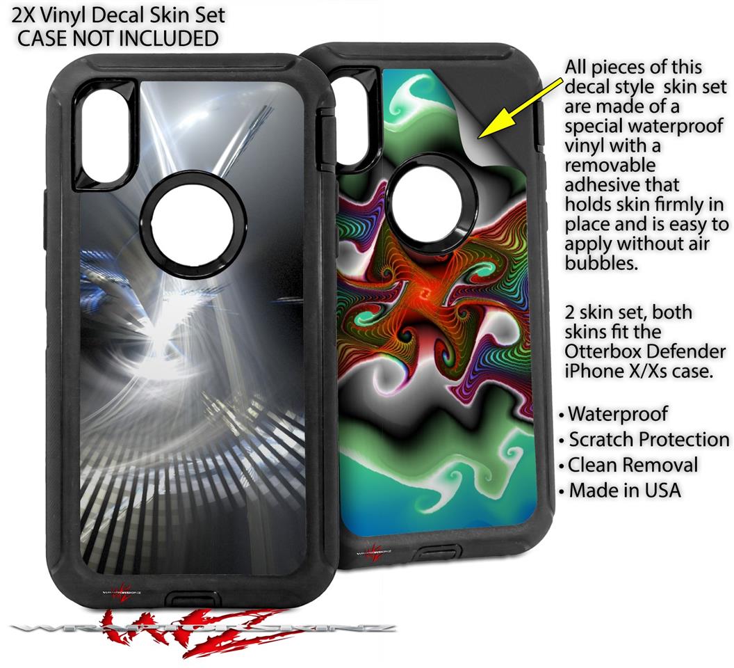 2x Decal style Skin Wrap Set compatible with Otterbox Defender iPhone X and Xs Case - Breakthrough (CASE NOT INCLUDED)