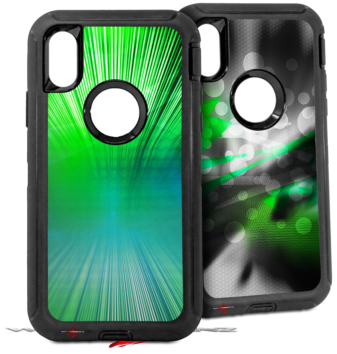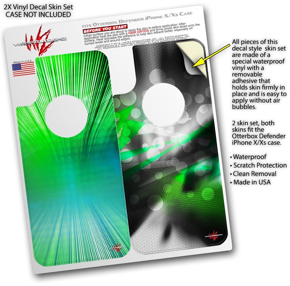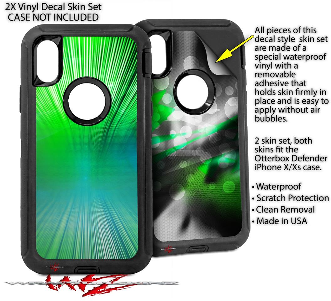 2x Decal style Skin Wrap Set compatible with Otterbox Defender iPhone X and Xs Case - Bent Light Greenish (CASE NOT INCLUDED)