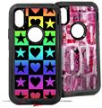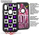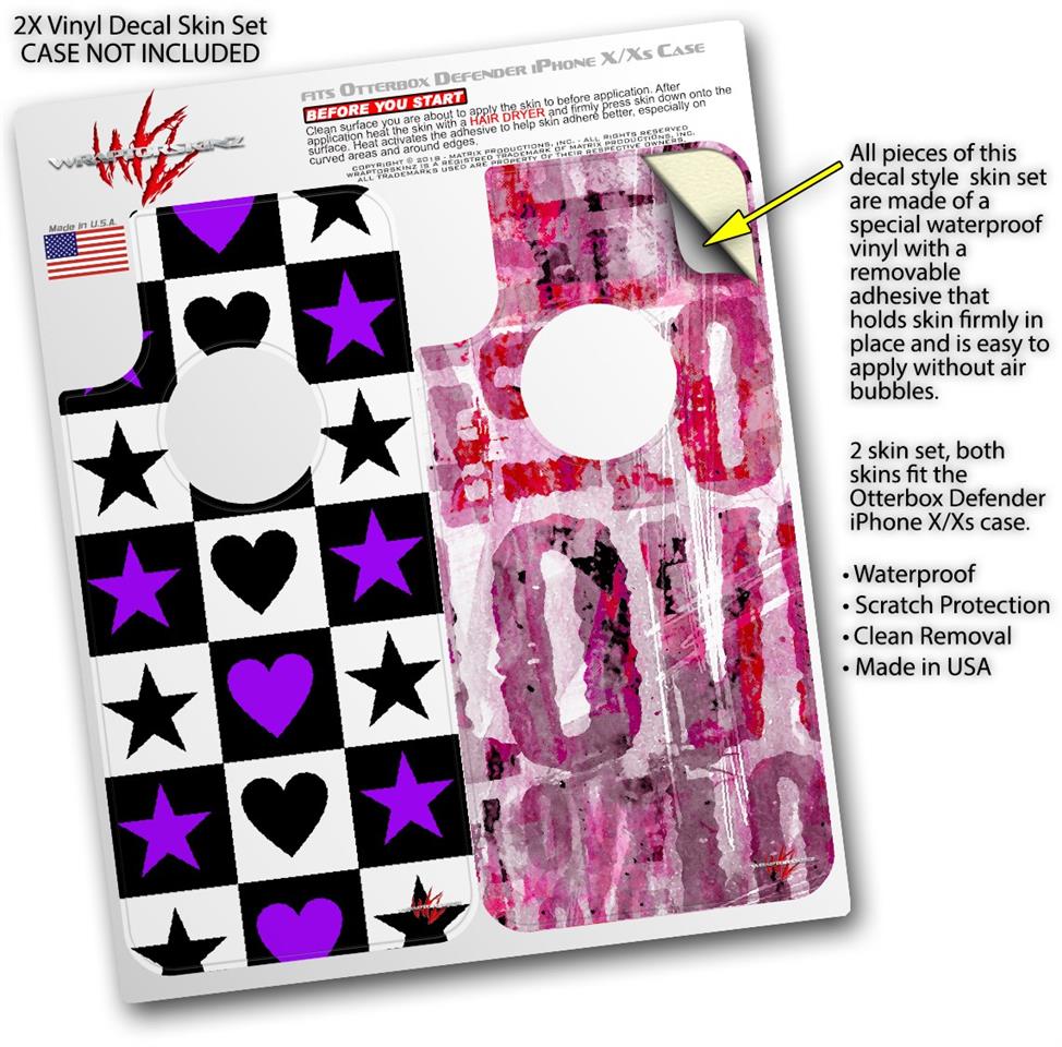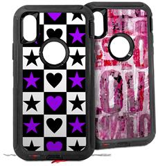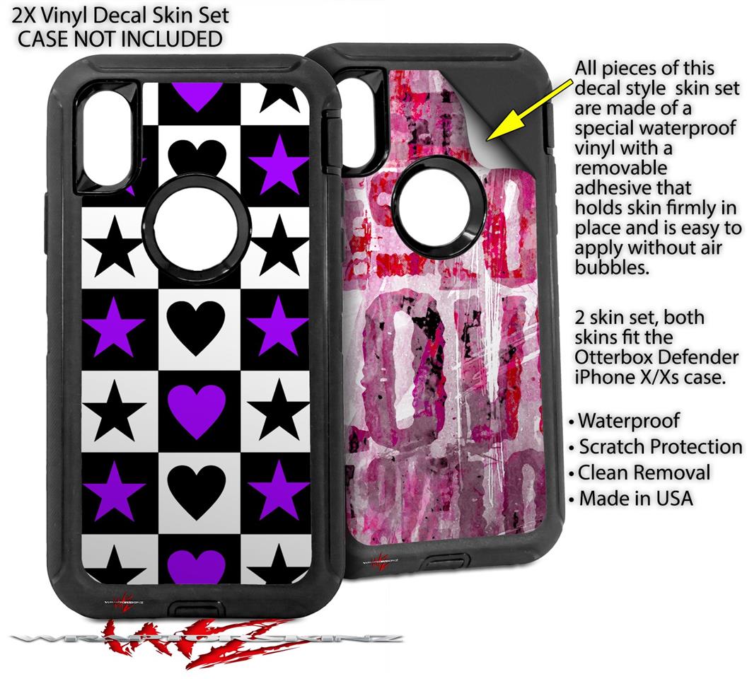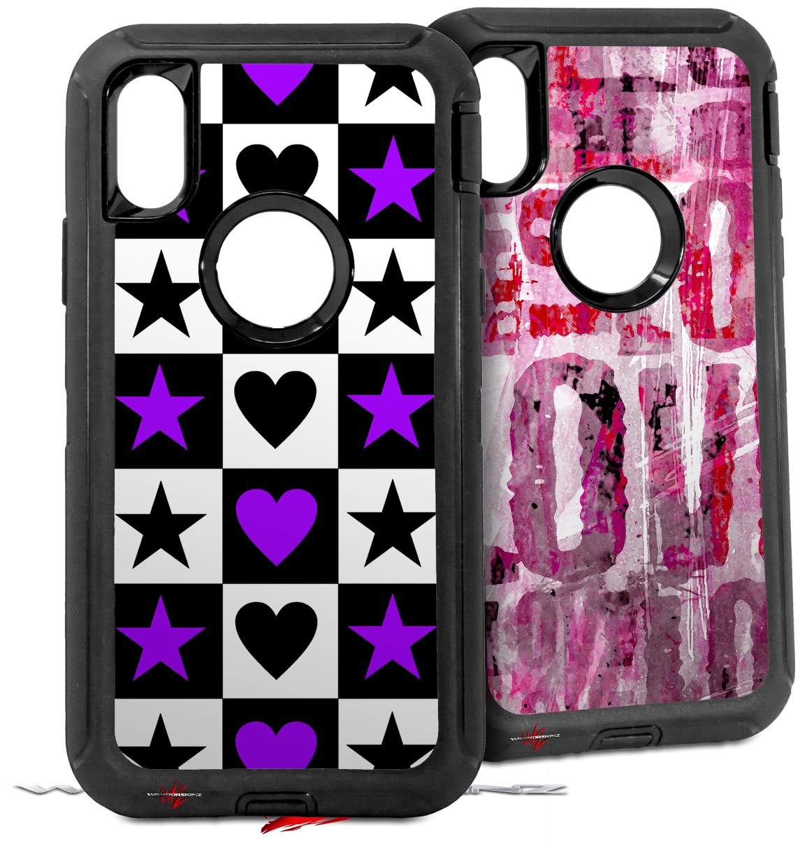 2x Decal style Skin Wrap Set compatible with Otterbox Defender iPhone X and Xs Case - Purple Hearts And Stars (CASE NOT INCLUDED)