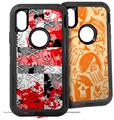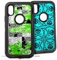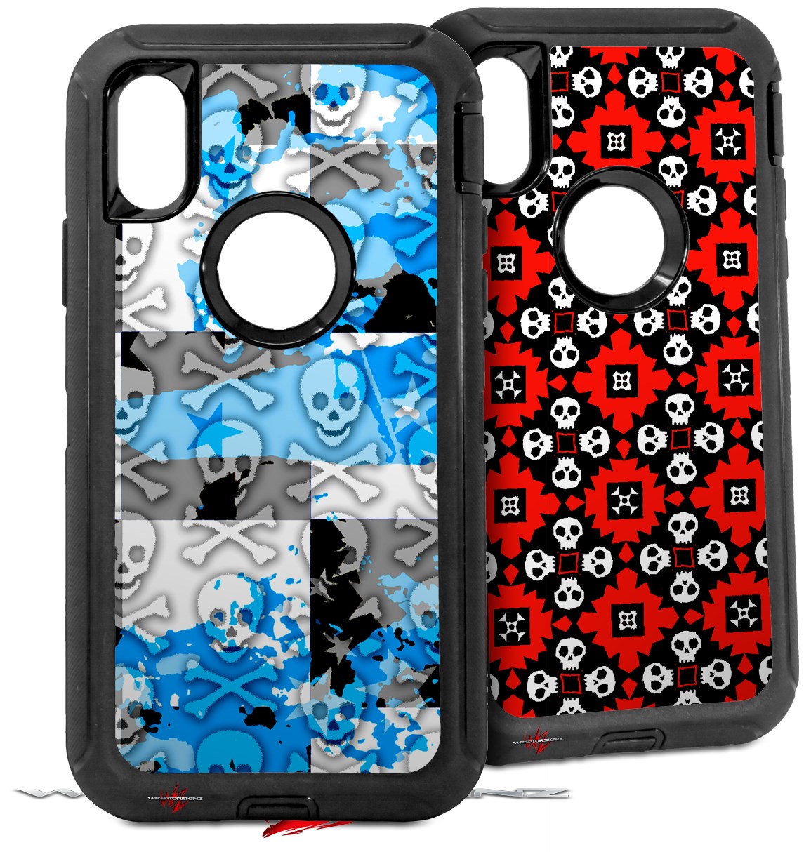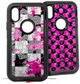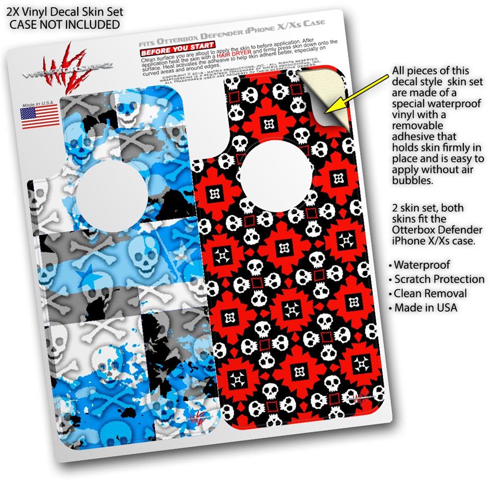 2x Decal style Skin Wrap Set compatible with Otterbox Defender iPhone X and Xs Case - Checker Skull Splatter Blue (CASE NOT INCLUDED)