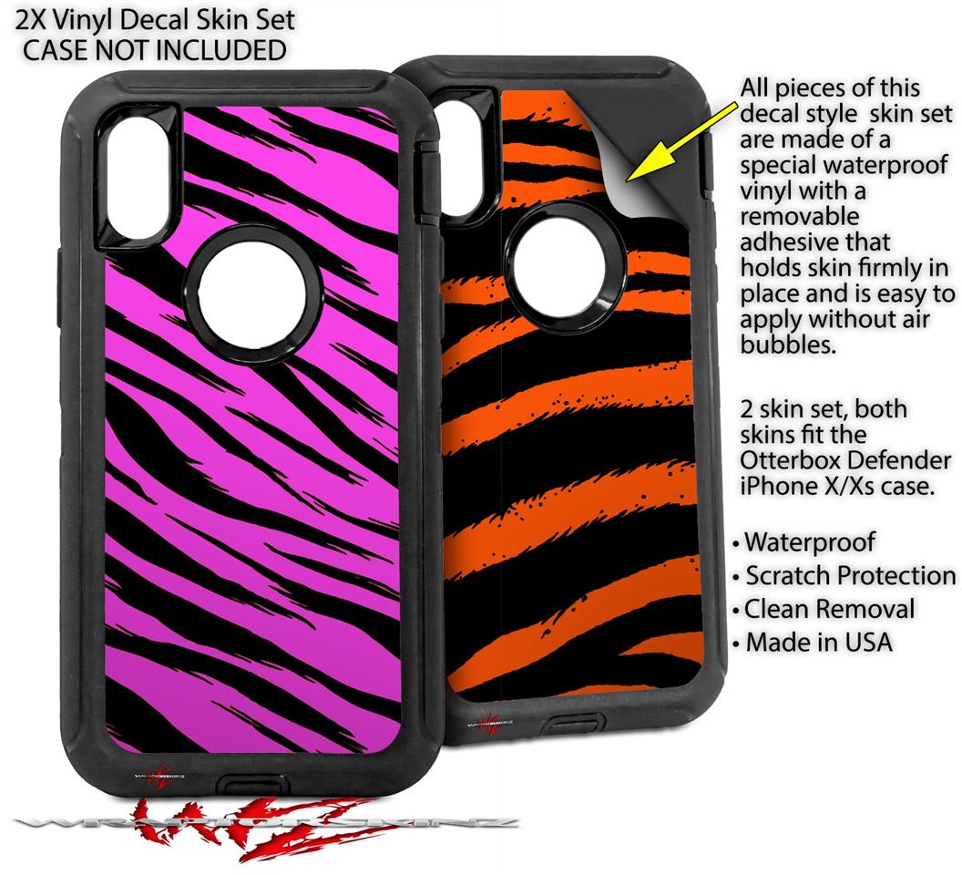 2x Decal style Skin Wrap Set compatible with Otterbox Defender iPhone X and Xs Case - Pink Tiger (CASE NOT INCLUDED)