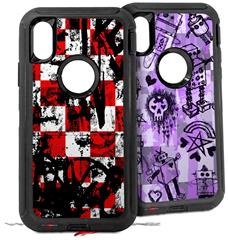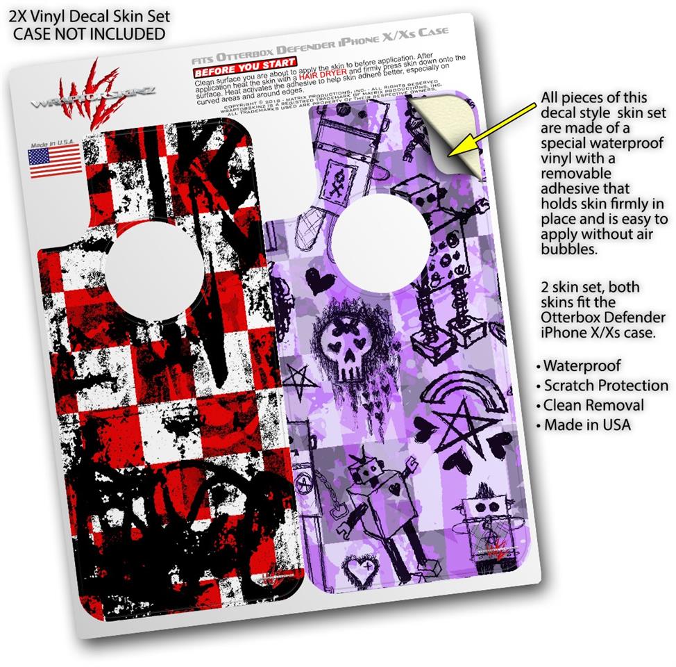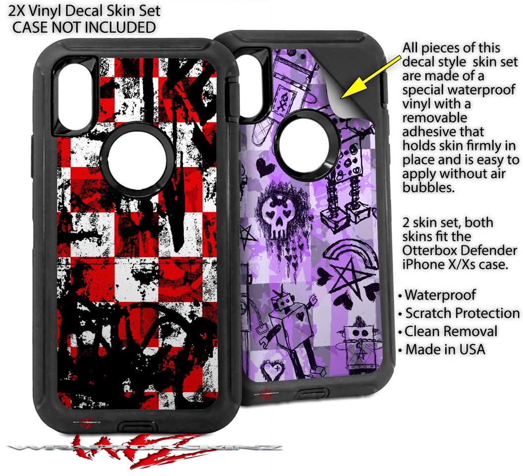 2x Decal style Skin Wrap Set compatible with Otterbox Defender iPhone X and Xs Case - Checker Graffiti (CASE NOT INCLUDED)