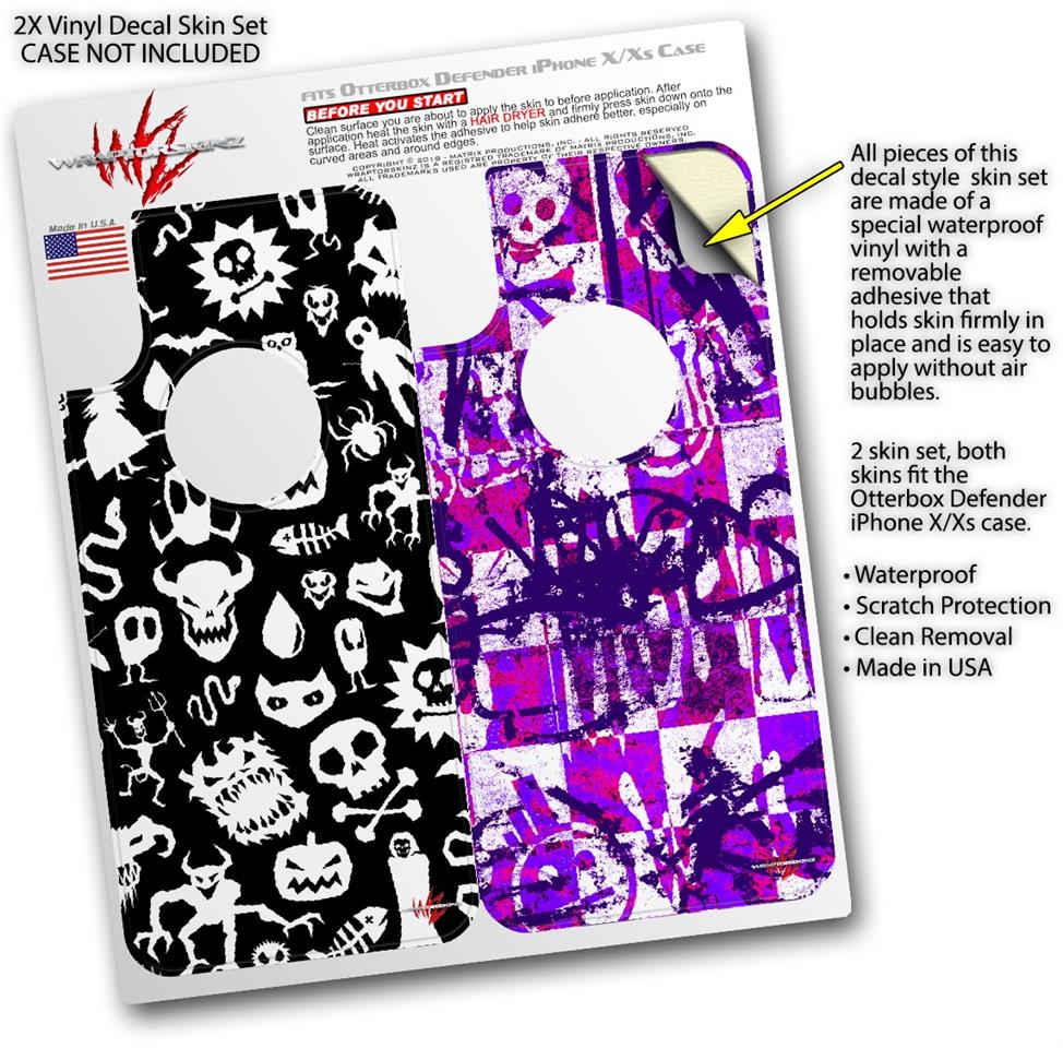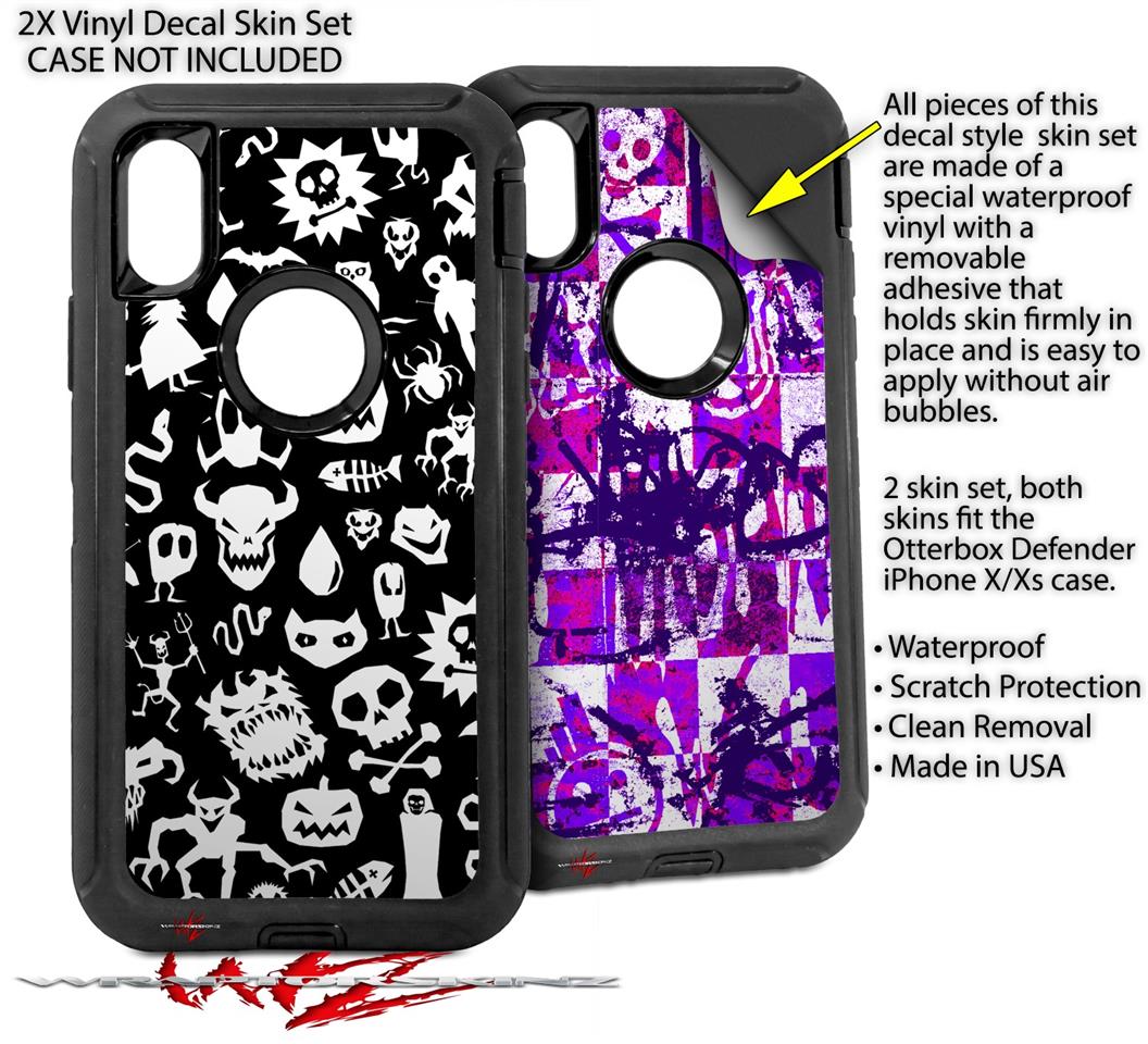2x Decal style Skin Wrap Set compatible with Otterbox Defender iPhone X and Xs Case - Monsters (CASE NOT INCLUDED)