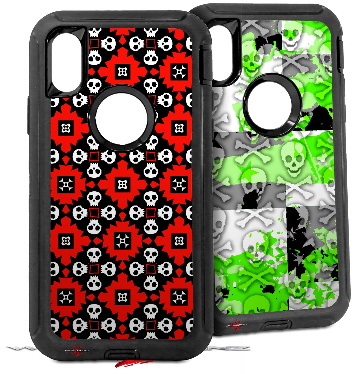 2x Decal style Skin Wrap Set compatible with Otterbox Defender iPhone X and Xs Case - Goth Punk Skulls (CASE NOT INCLUDED)
