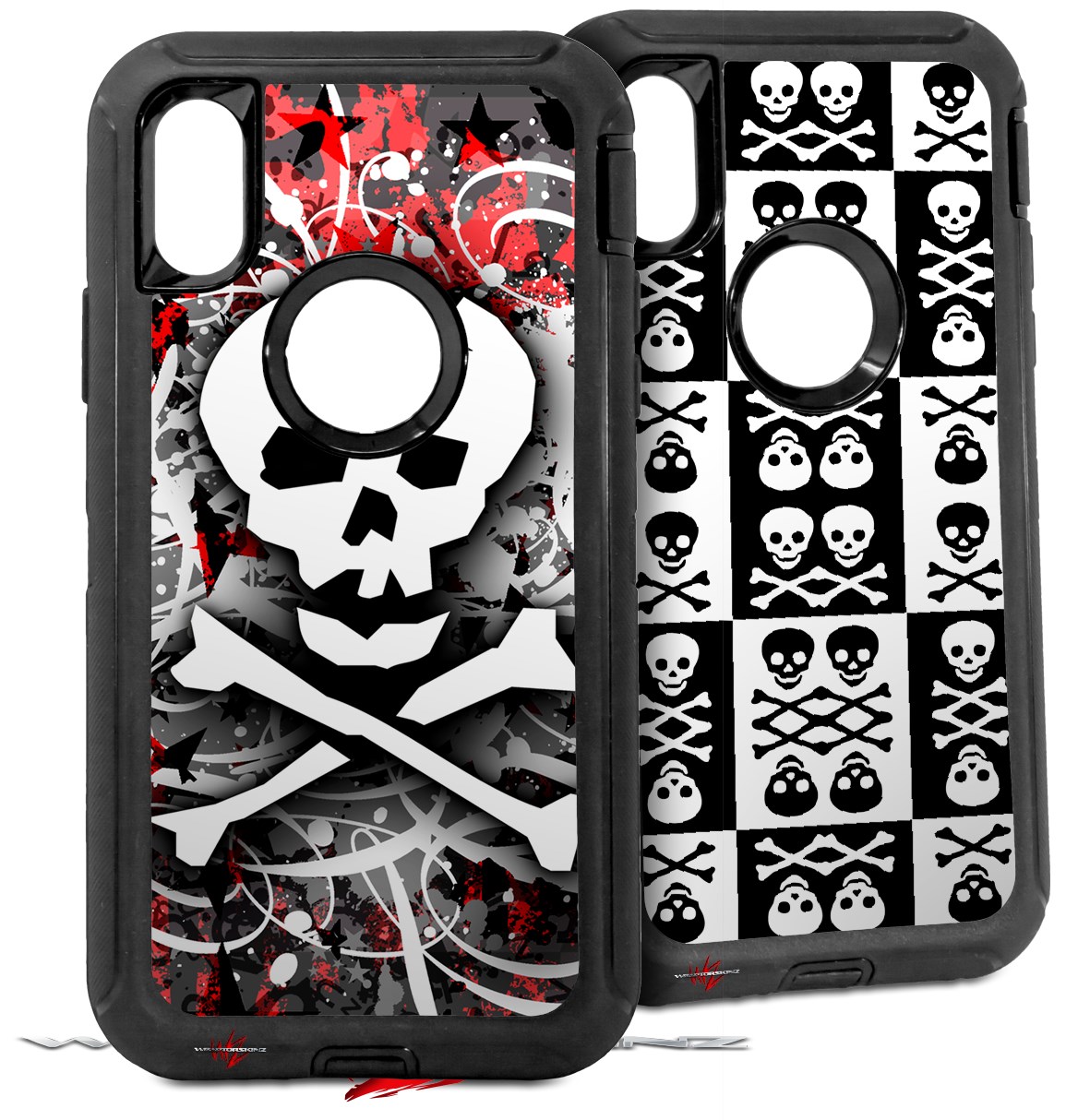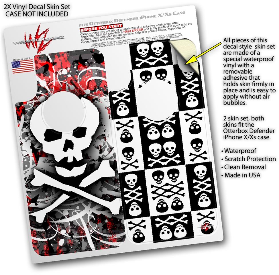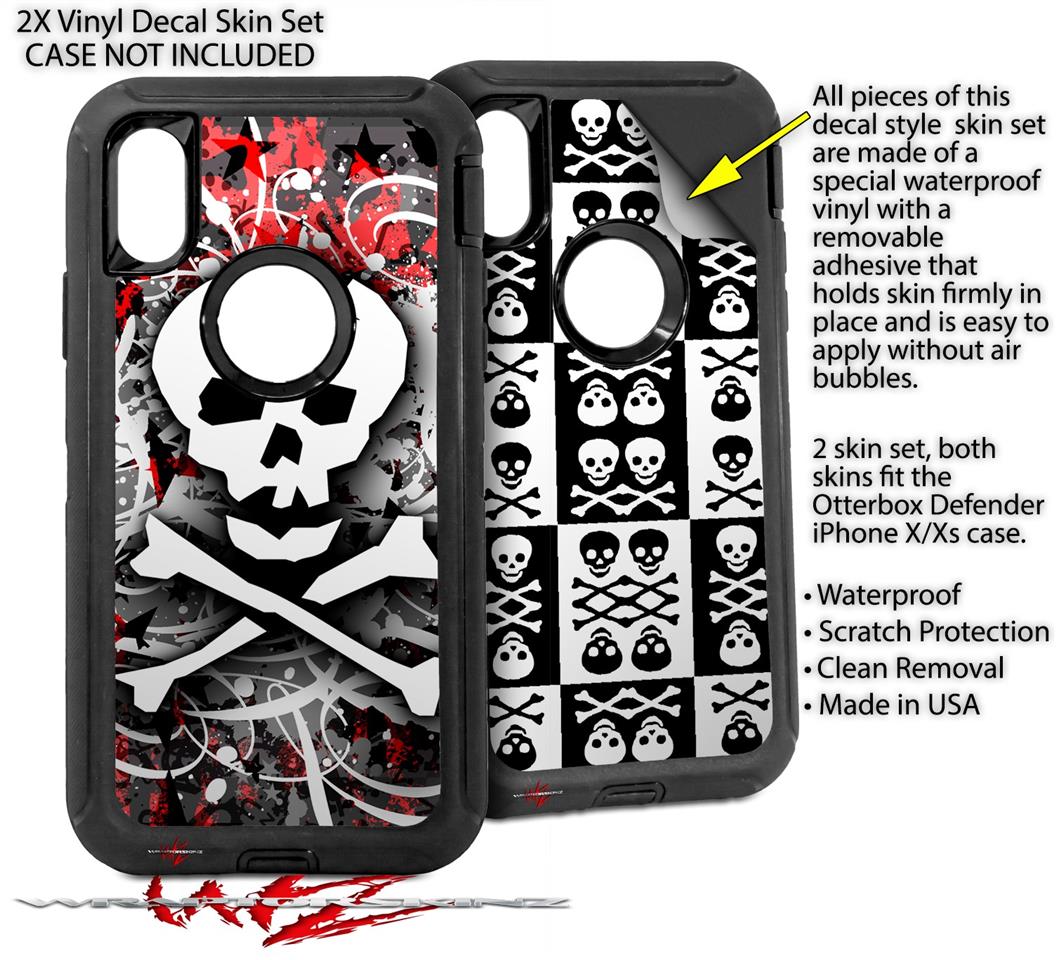 2x Decal style Skin Wrap Set compatible with Otterbox Defender iPhone X and Xs Case - Skull Splatter (CASE NOT INCLUDED)