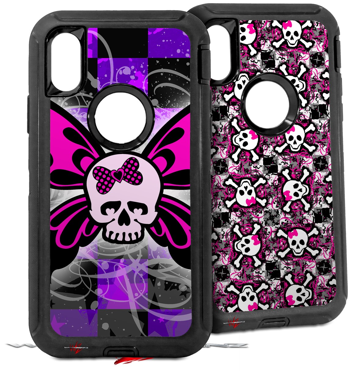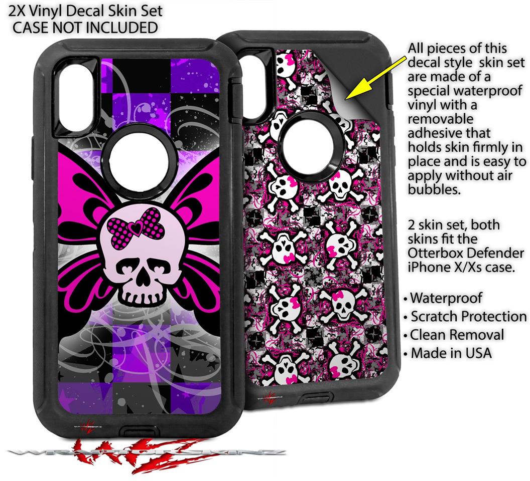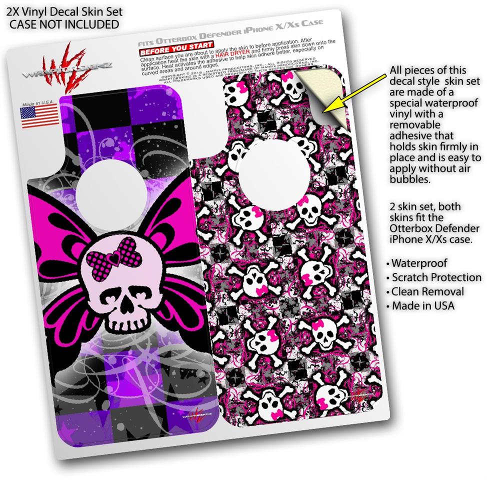 2x Decal style Skin Wrap Set compatible with Otterbox Defender iPhone X and Xs Case - Butterfly Skull (CASE NOT INCLUDED)
