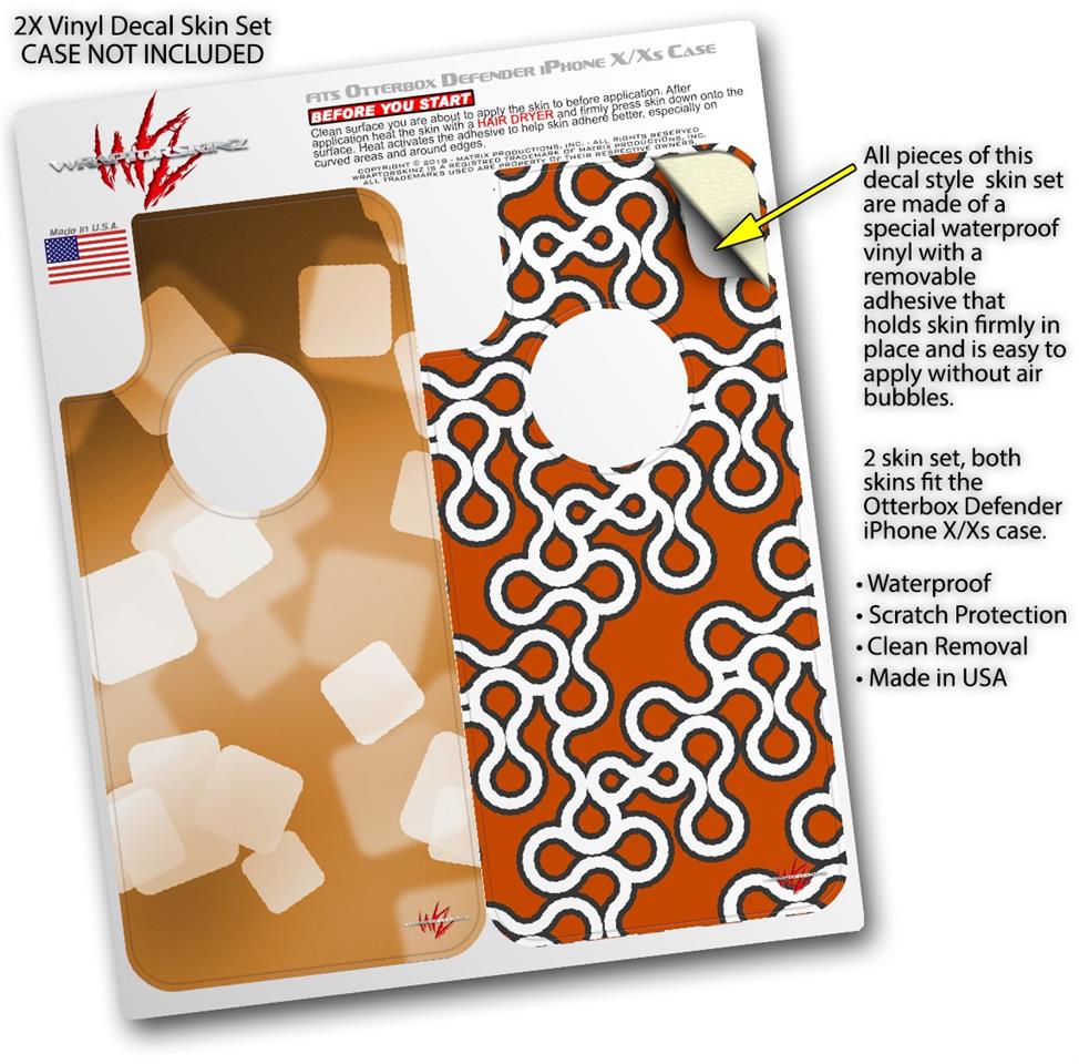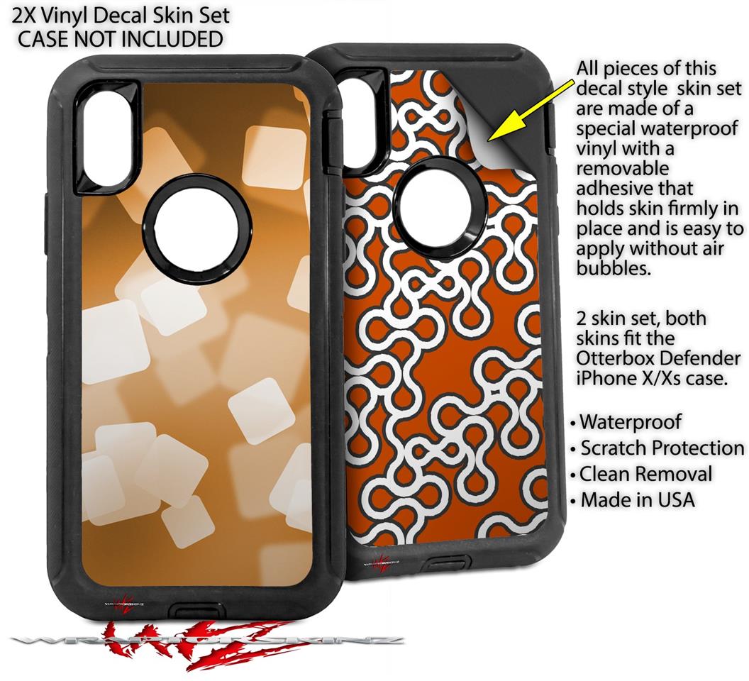 2x Decal style Skin Wrap Set compatible with Otterbox Defender iPhone X and Xs Case - Bokeh Squared Orange (CASE NOT INCLUDED)