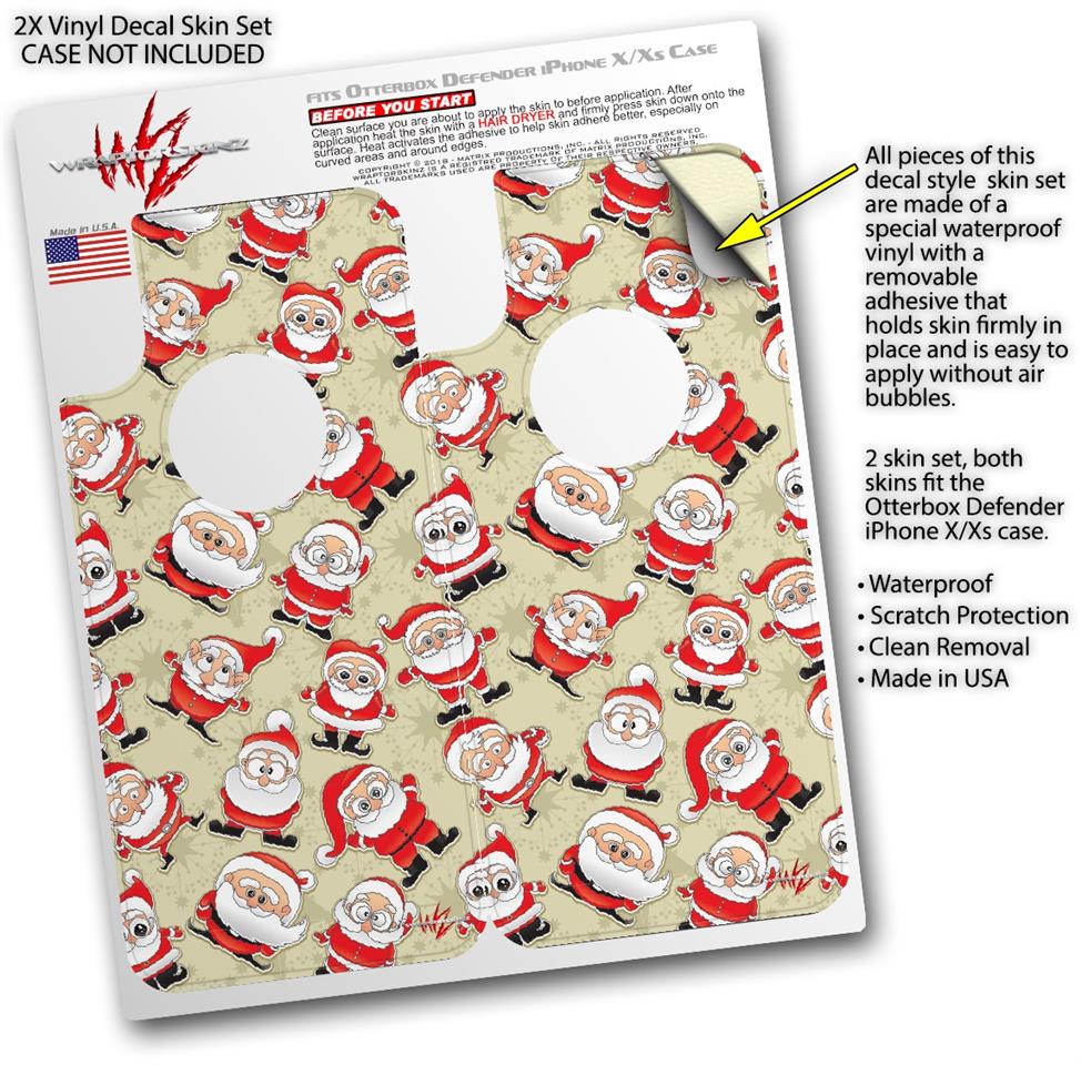 2x Decal style Skin Wrap Set compatible with Otterbox Defender iPhone X and Xs Case - Lots of Santas (CASE NOT INCLUDED)