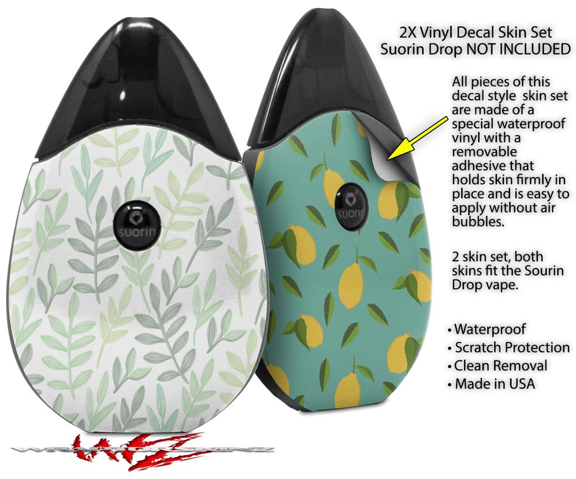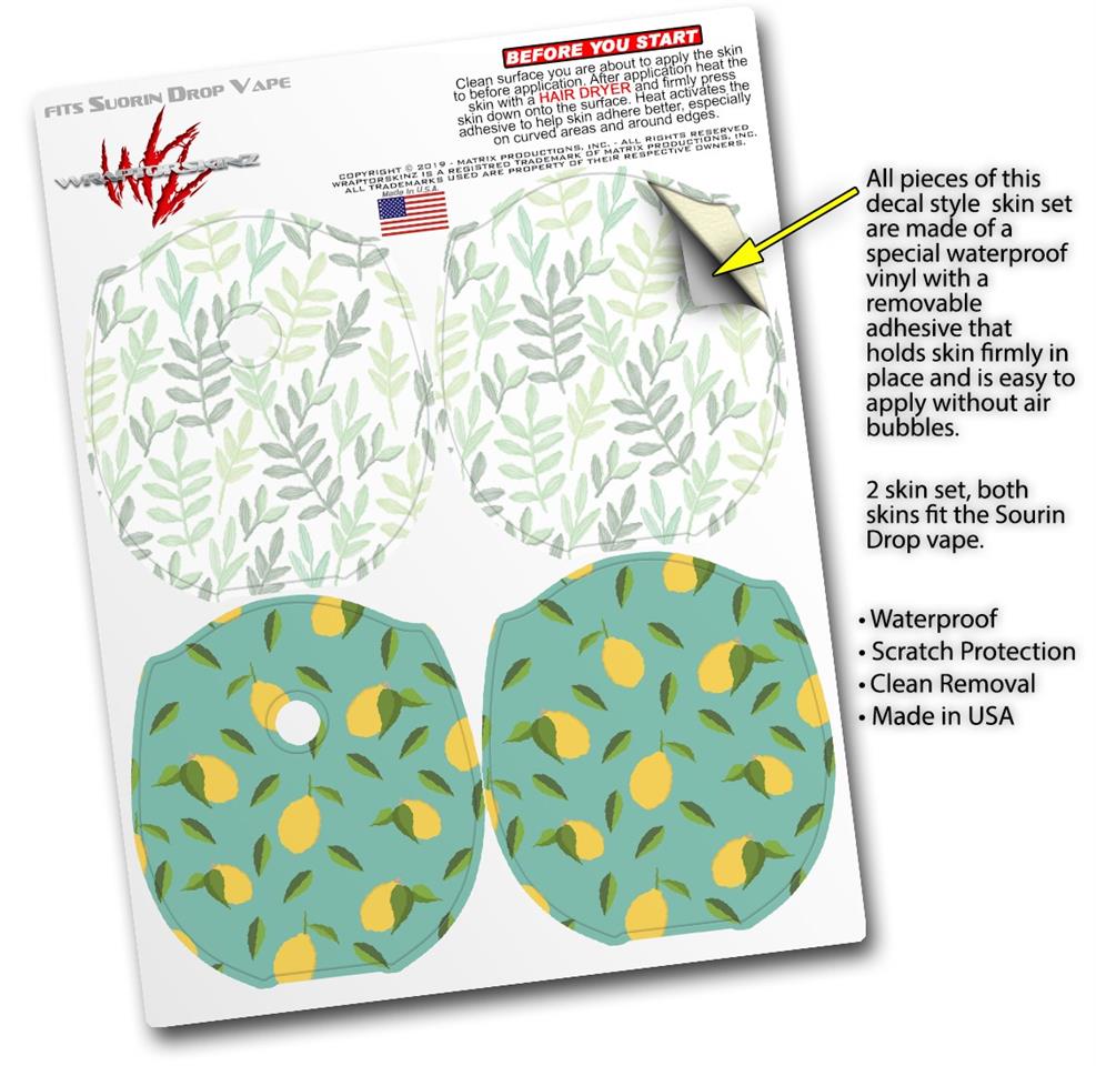 Skin Decal Wrap 2 Pack compatible with Suorin Drop Watercolor Leaves White VAPE NOT INCLUDED