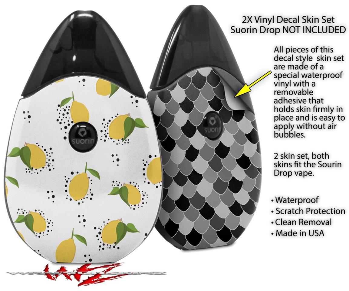 Skin Decal Wrap 2 Pack compatible with Suorin Drop Lemon Black and White VAPE NOT INCLUDED