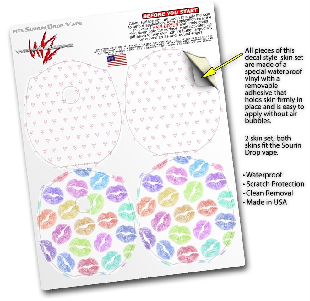 Skin Decal Wrap 2 Pack compatible with Suorin Drop Hearts Pink VAPE NOT INCLUDED