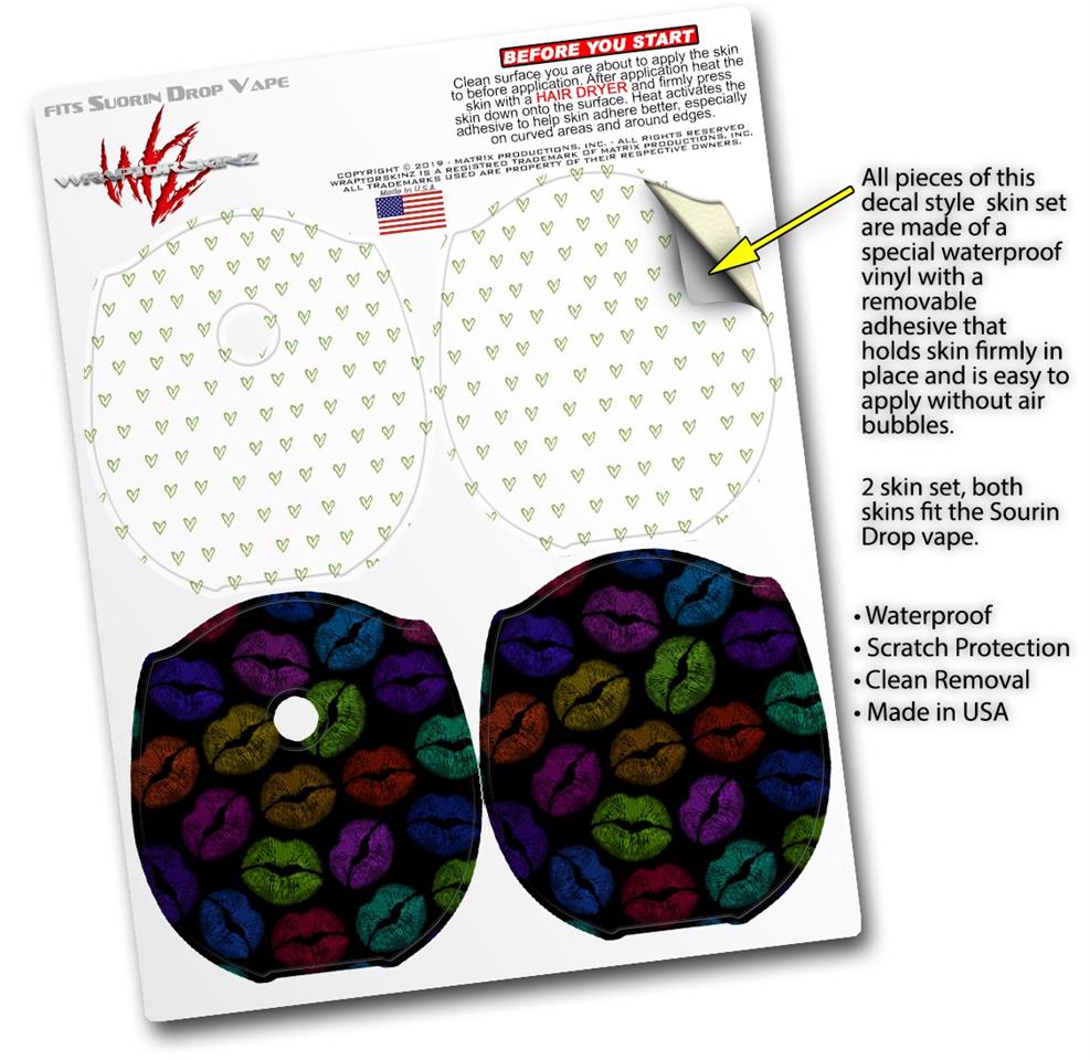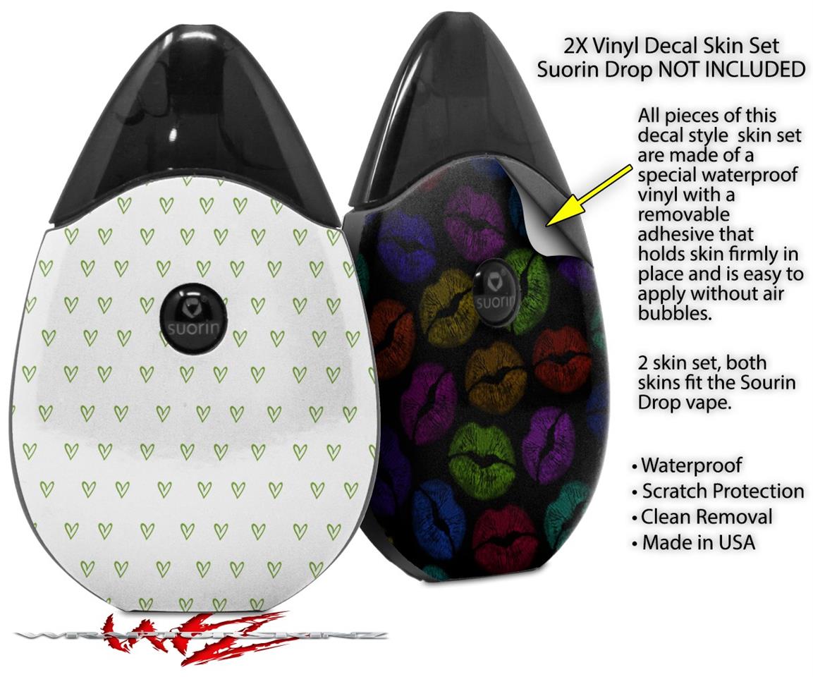 Skin Decal Wrap 2 Pack compatible with Suorin Drop Hearts Green VAPE NOT INCLUDED