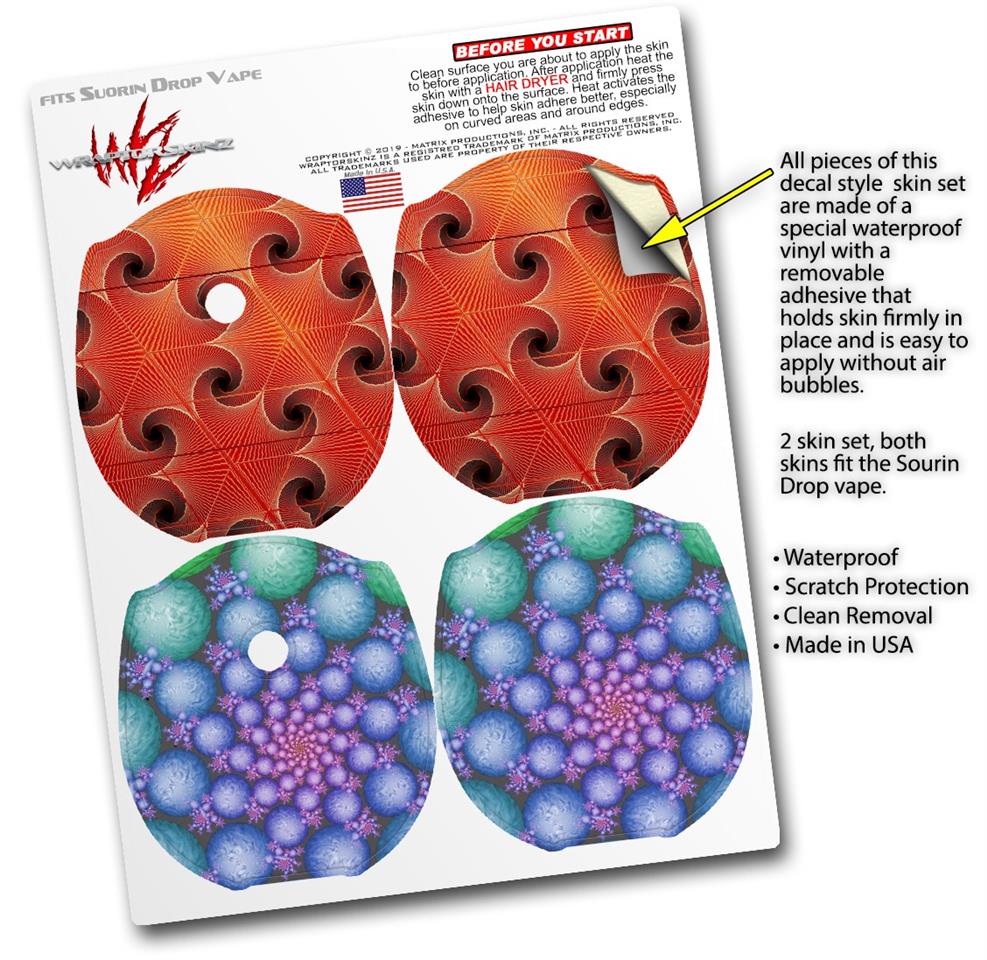WraptorSkinz® skin wraps compatible with Suorin Drop Vape are printed using superb photo quality designs and vibrant colors printed with special fade resistant inks that last even in direct sun for years. WraptorSkinz are a composite of two layers of commercial grade materials. The bottom layer is a soft, flexible vinyl with a special removable adhesive that is easily positioned, applied without air bubbles. Next, we print the bottom layer with UV protected, fade resistant inks that deliver superb photo quality designs in vibrant colors. Finally, we bond a professional grade laminate over the entire skin adding a glossy protective finish. This product is not affiliated with or endorsed by Suorin.
