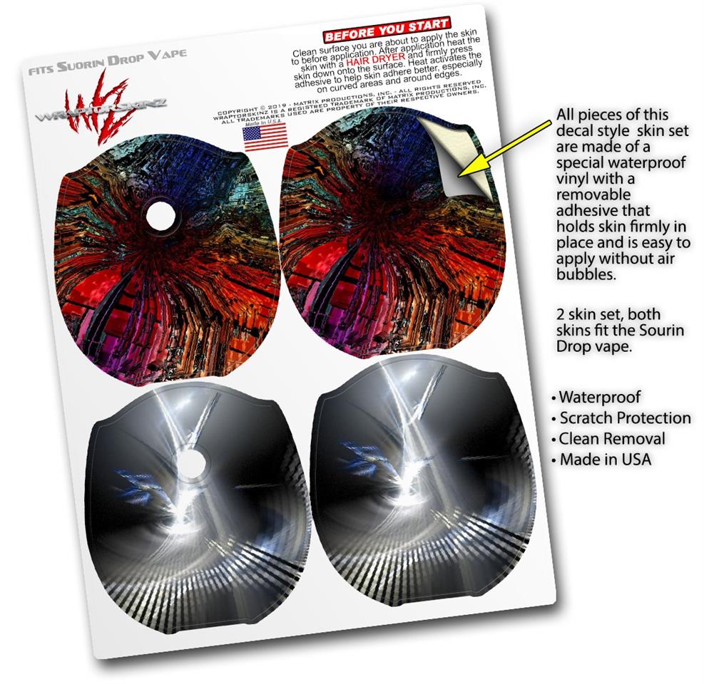 WraptorSkinz® skin wraps compatible with Suorin Drop Vape are printed using superb photo quality designs and vibrant colors printed with special fade resistant inks that last even in direct sun for years. WraptorSkinz are a composite of two layers of commercial grade materials. The bottom layer is a soft, flexible vinyl with a special removable adhesive that is easily positioned, applied without air bubbles. Next, we print the bottom layer with UV protected, fade resistant inks that deliver superb photo quality designs in vibrant colors. Finally, we bond a professional grade laminate over the entire skin adding a glossy protective finish. This product is not affiliated with or endorsed by Suorin.