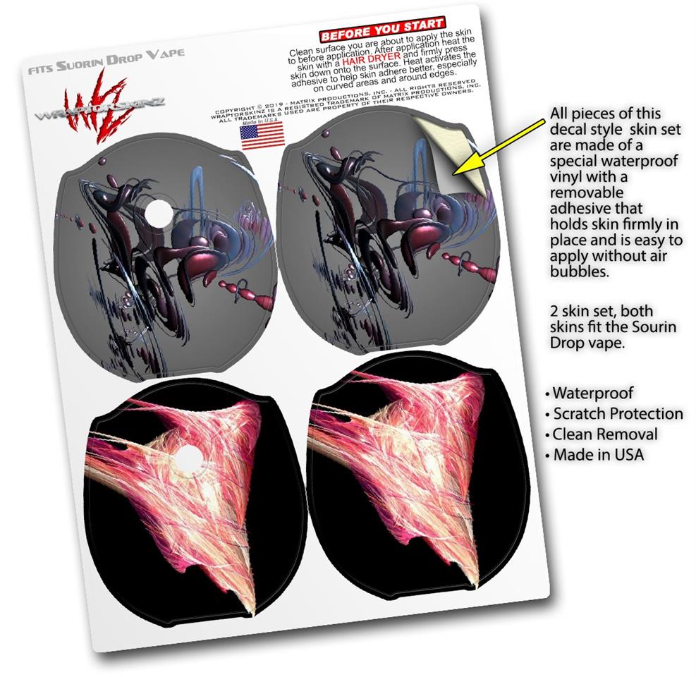 WraptorSkinz® skin wraps compatible with Suorin Drop Vape are printed using superb photo quality designs and vibrant colors printed with special fade resistant inks that last even in direct sun for years. WraptorSkinz are a composite of two layers of commercial grade materials. The bottom layer is a soft, flexible vinyl with a special removable adhesive that is easily positioned, applied without air bubbles. Next, we print the bottom layer with UV protected, fade resistant inks that deliver superb photo quality designs in vibrant colors. Finally, we bond a professional grade laminate over the entire skin adding a glossy protective finish. This product is not affiliated with or endorsed by Suorin.
