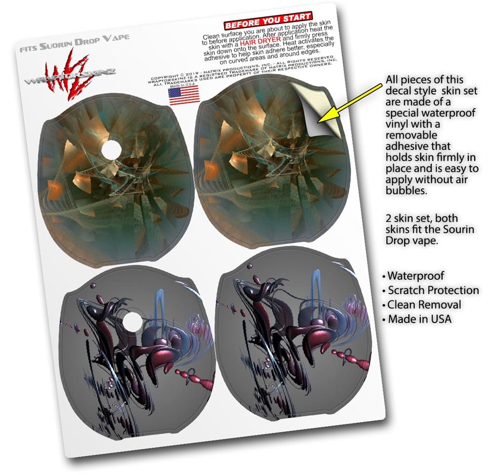 WraptorSkinz® skin wraps compatible with Suorin Drop Vape are printed using superb photo quality designs and vibrant colors printed with special fade resistant inks that last even in direct sun for years. WraptorSkinz are a composite of two layers of commercial grade materials. The bottom layer is a soft, flexible vinyl with a special removable adhesive that is easily positioned, applied without air bubbles. Next, we print the bottom layer with UV protected, fade resistant inks that deliver superb photo quality designs in vibrant colors. Finally, we bond a professional grade laminate over the entire skin adding a glossy protective finish. This product is not affiliated with or endorsed by Suorin.