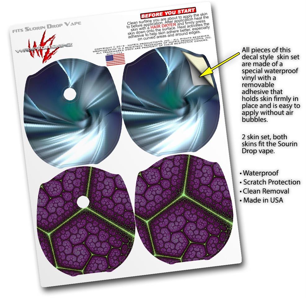 WraptorSkinz® skin wraps compatible with Suorin Drop Vape are printed using superb photo quality designs and vibrant colors printed with special fade resistant inks that last even in direct sun for years. WraptorSkinz are a composite of two layers of commercial grade materials. The bottom layer is a soft, flexible vinyl with a special removable adhesive that is easily positioned, applied without air bubbles. Next, we print the bottom layer with UV protected, fade resistant inks that deliver superb photo quality designs in vibrant colors. Finally, we bond a professional grade laminate over the entire skin adding a glossy protective finish. This product is not affiliated with or endorsed by Suorin.