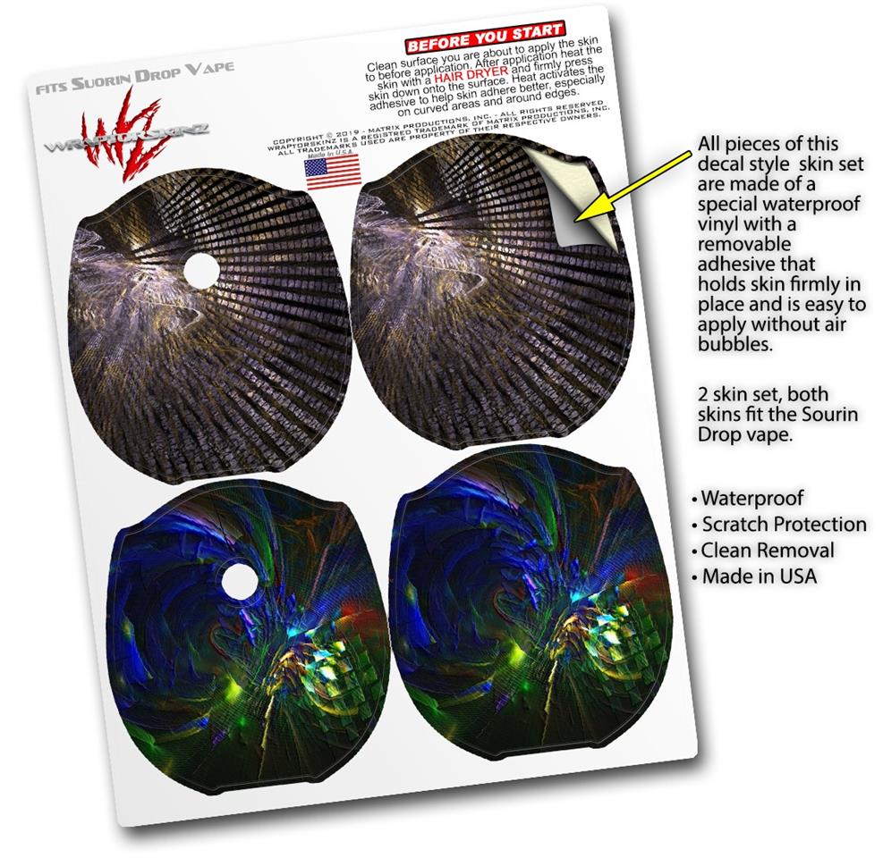 WraptorSkinz® skin wraps compatible with Suorin Drop Vape are printed using superb photo quality designs and vibrant colors printed with special fade resistant inks that last even in direct sun for years. WraptorSkinz are a composite of two layers of commercial grade materials. The bottom layer is a soft, flexible vinyl with a special removable adhesive that is easily positioned, applied without air bubbles. Next, we print the bottom layer with UV protected, fade resistant inks that deliver superb photo quality designs in vibrant colors. Finally, we bond a professional grade laminate over the entire skin adding a glossy protective finish. This product is not affiliated with or endorsed by Suorin.