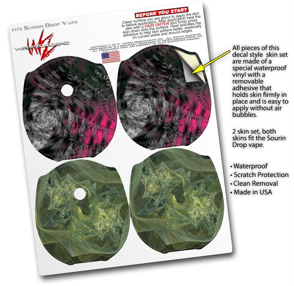 WraptorSkinz® skin wraps compatible with Suorin Drop Vape are printed using superb photo quality designs and vibrant colors printed with special fade resistant inks that last even in direct sun for years. WraptorSkinz are a composite of two layers of commercial grade materials. The bottom layer is a soft, flexible vinyl with a special removable adhesive that is easily positioned, applied without air bubbles. Next, we print the bottom layer with UV protected, fade resistant inks that deliver superb photo quality designs in vibrant colors. Finally, we bond a professional grade laminate over the entire skin adding a glossy protective finish. This product is not affiliated with or endorsed by Suorin.