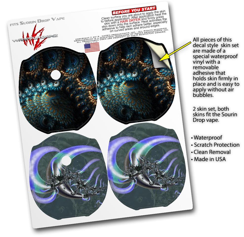 WraptorSkinz® skin wraps compatible with Suorin Drop Vape are printed using superb photo quality designs and vibrant colors printed with special fade resistant inks that last even in direct sun for years. WraptorSkinz are a composite of two layers of commercial grade materials. The bottom layer is a soft, flexible vinyl with a special removable adhesive that is easily positioned, applied without air bubbles. Next, we print the bottom layer with UV protected, fade resistant inks that deliver superb photo quality designs in vibrant colors. Finally, we bond a professional grade laminate over the entire skin adding a glossy protective finish. This product is not affiliated with or endorsed by Suorin.