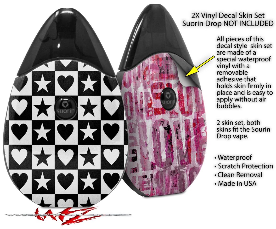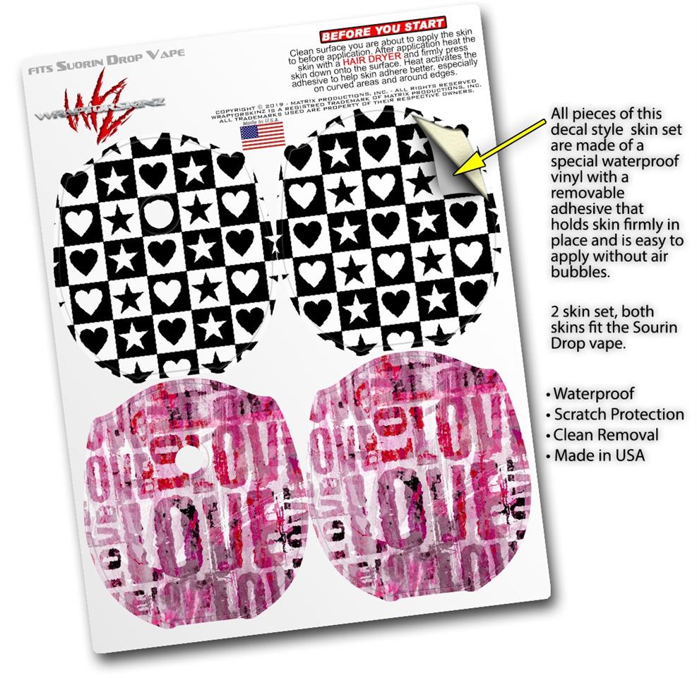 Skin Decal Wrap 2 Pack compatible with Suorin Drop Hearts And Stars Black and White VAPE NOT INCLUDED