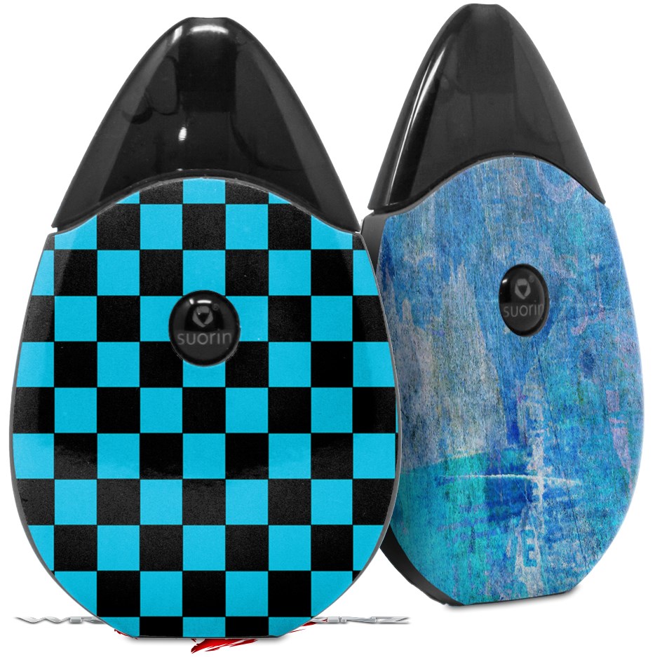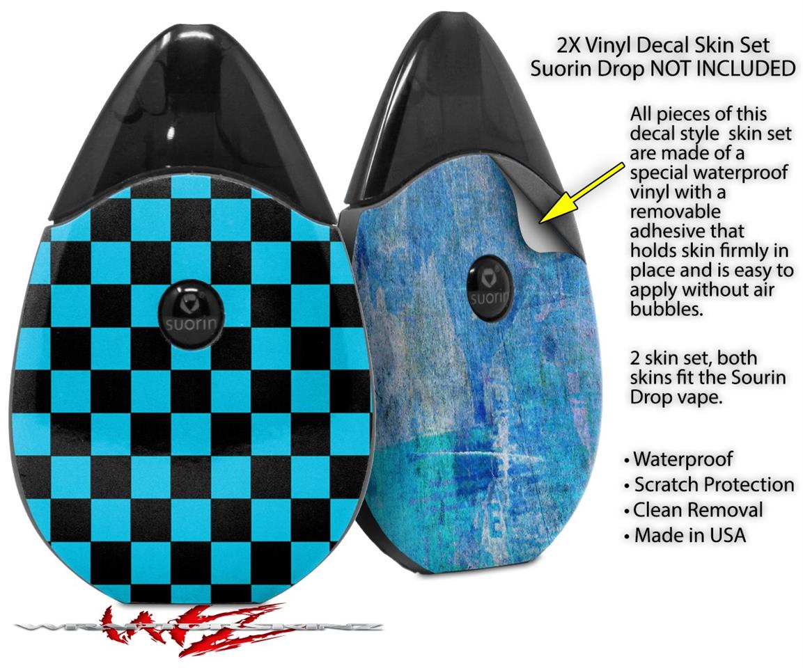 Skin Decal Wrap 2 Pack compatible with Suorin Drop Checkers Blue VAPE NOT INCLUDED