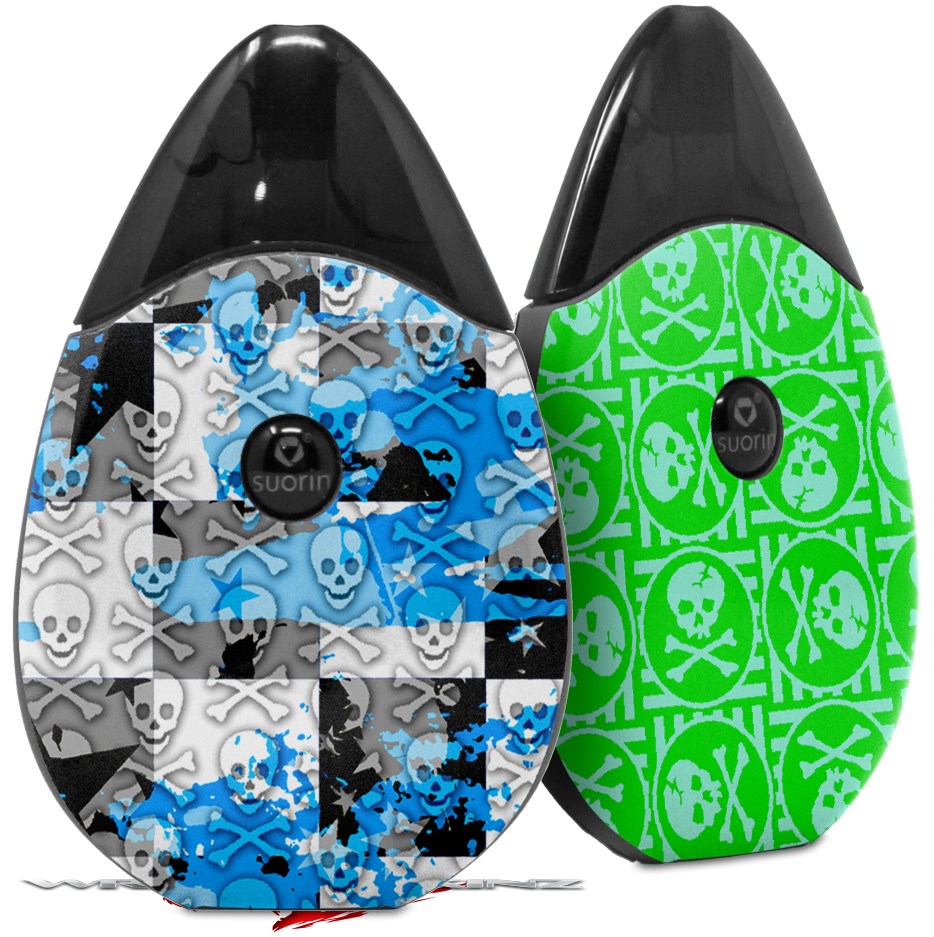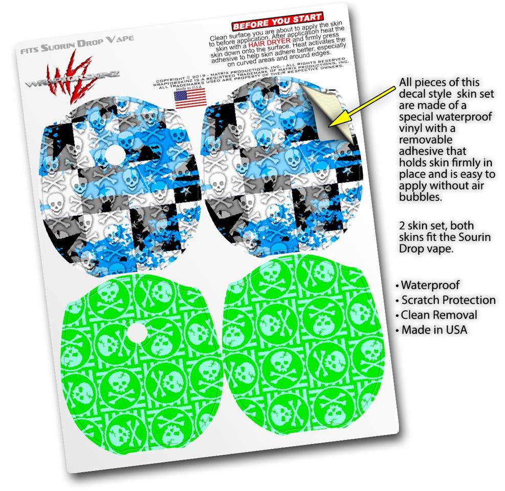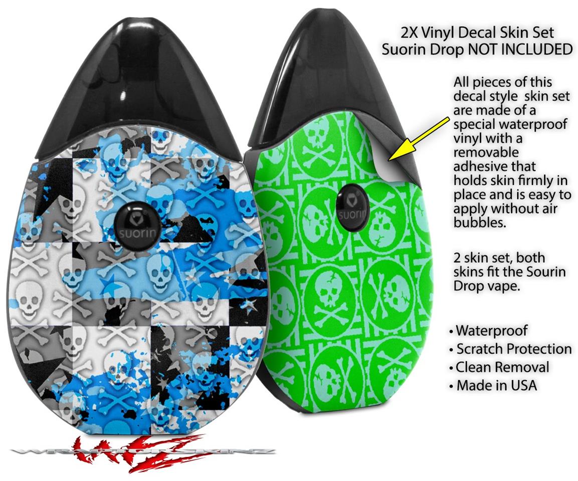 Skin Decal Wrap 2 Pack compatible with Suorin Drop Checker Skull Splatter Blue VAPE NOT INCLUDED