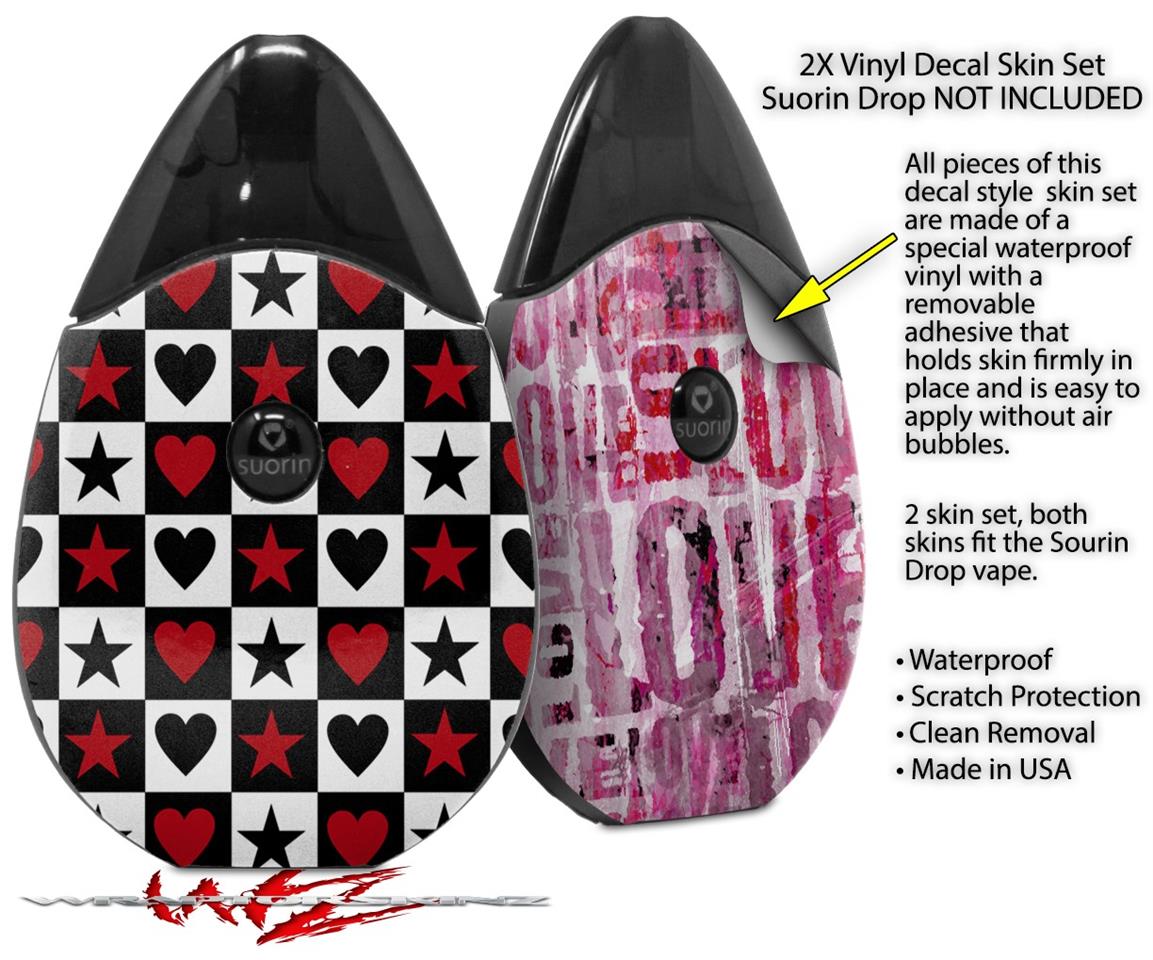 Skin Decal Wrap 2 Pack compatible with Suorin Drop Hearts and Stars Red VAPE NOT INCLUDED